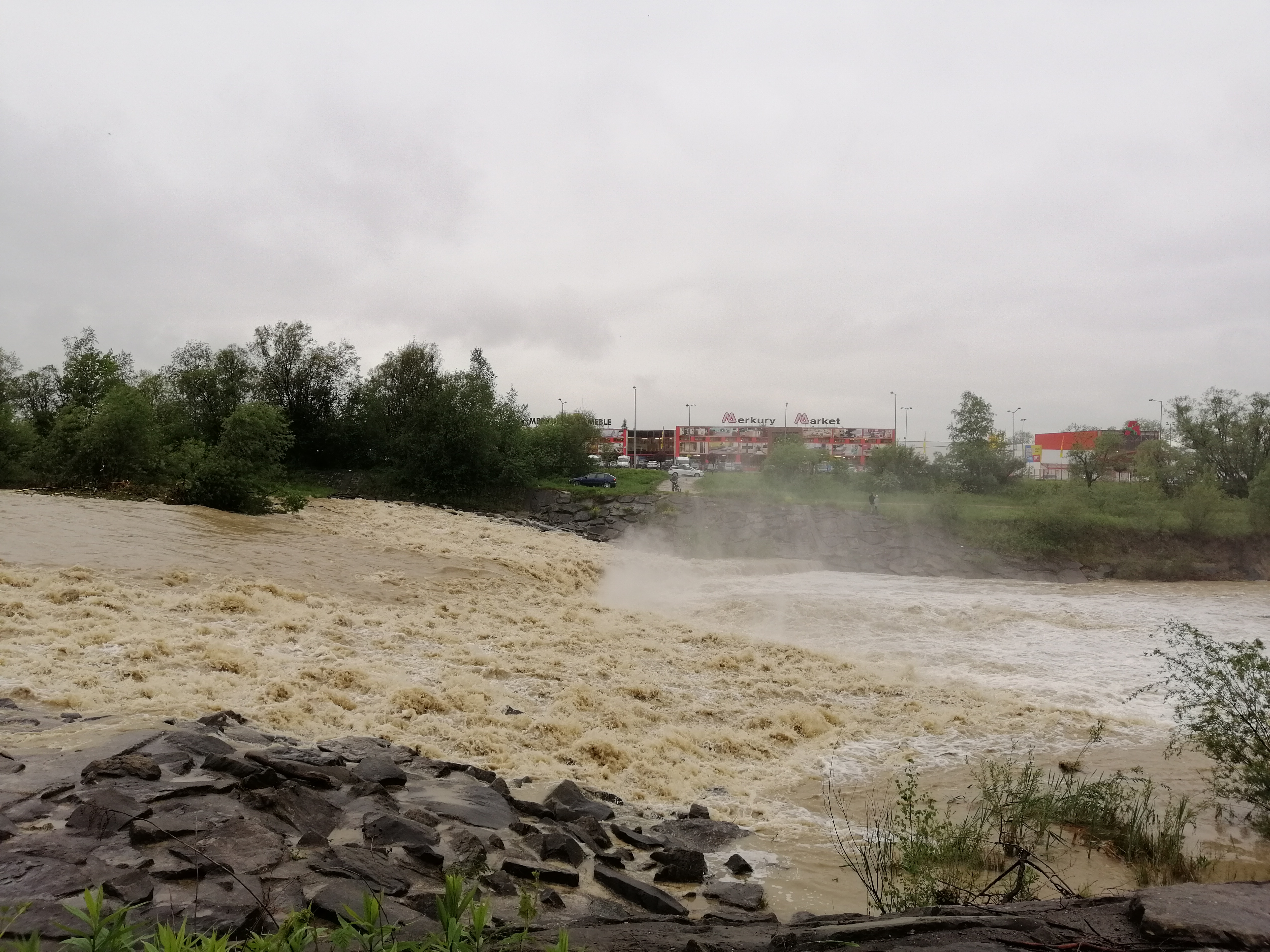 W ubiegłym tygodniu w Małopolsce było naprawdę groźnie. Sumy opadów okazały się bardzo duże i już wiadomo że maj 2019 w Nowym Sączu z całą pewnością będzie trzecim najbardziej mokrym majem (za 2010 i 2014). Na rzece Kamienica, w pobliżu której mieszkam, ogłoszono stan alarmowy. Tak wyglądała w piątek 24 maja: