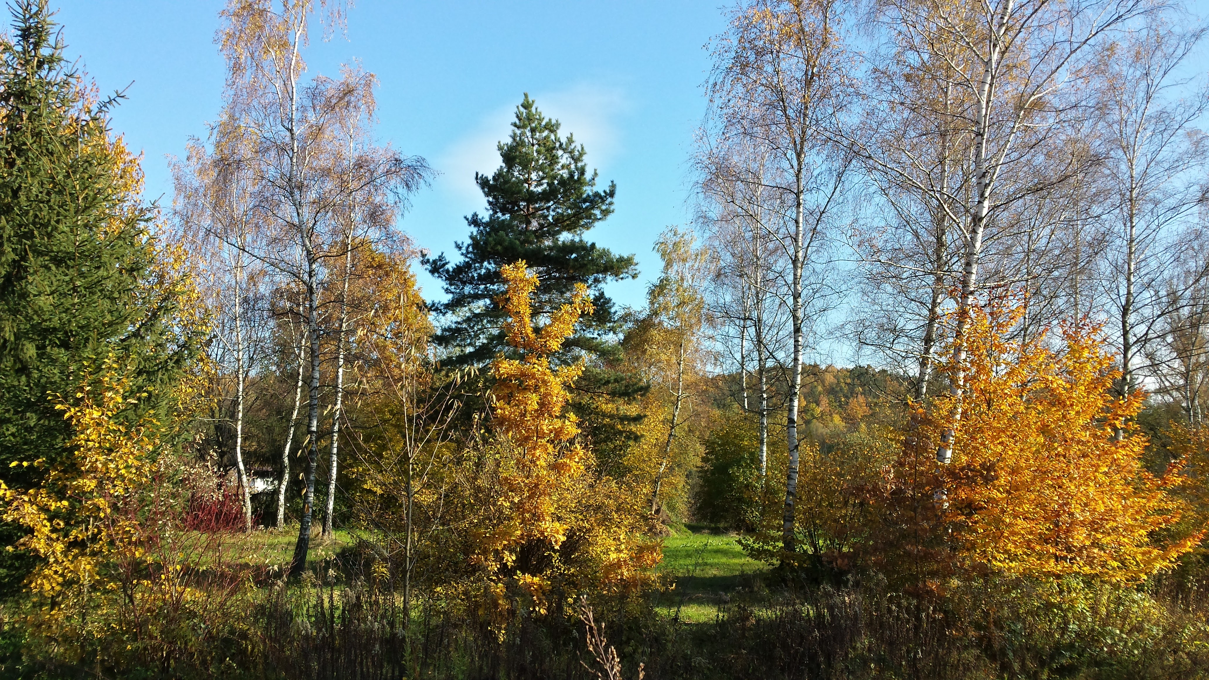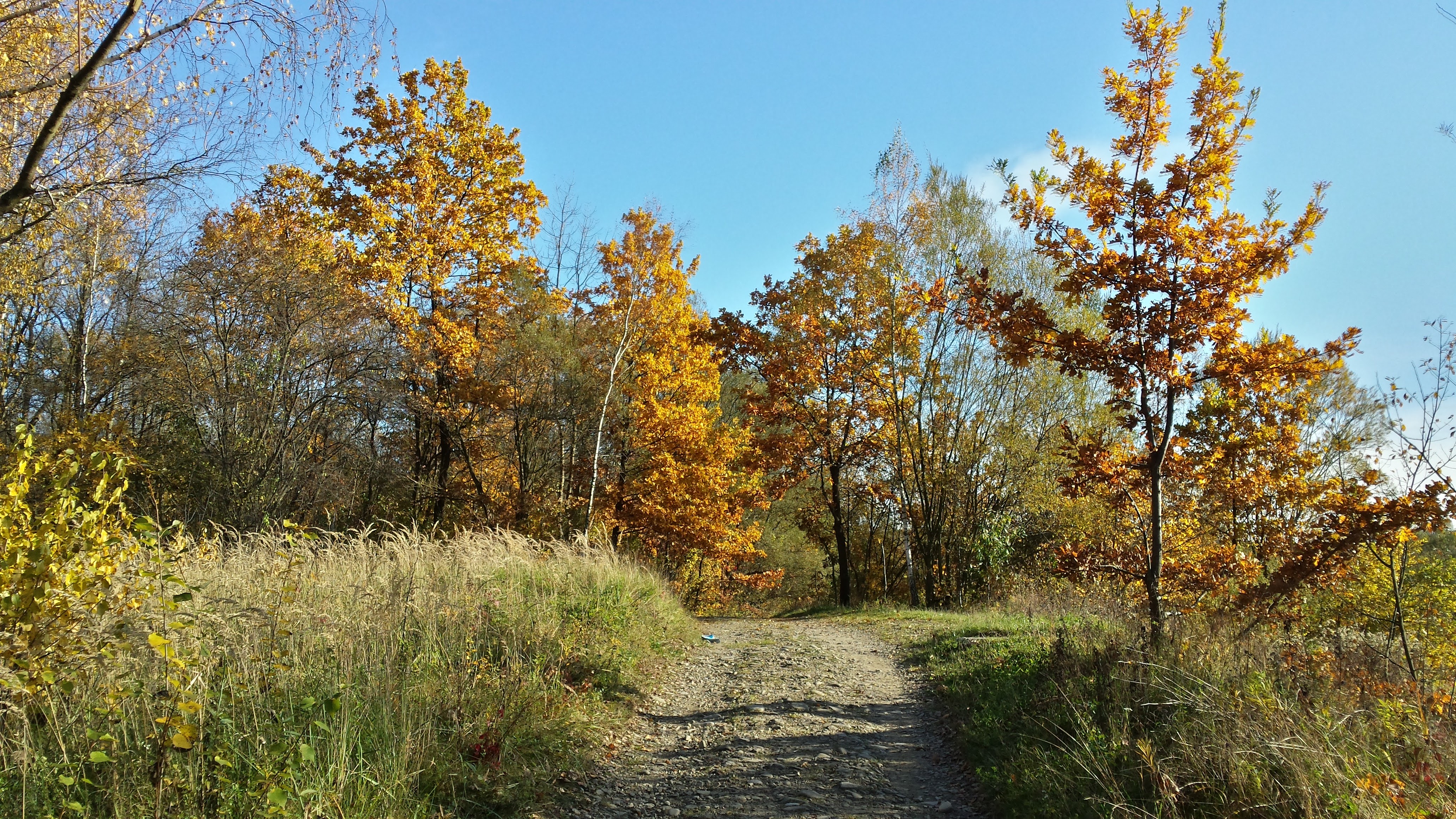 Ale zdarzył się miły wyjątek :) Dokładnie trzy lata temu, w niedzielę 23 października 2016 roku niebo zupełnie się rozpogodziło. Na jeden dzień. Miesiąc ukazał się z niemal zupełnie nieznanej strony. Choć temperatura pokazała tylko 14 stopni, to samo słońce od którego zacząłem się odzwyczajać, bardzo podniosło tę wartość odczuwalnie. Odsłoniło piękną, złotą jesień, zmarnowaną długimi ciągami słotnych dni.