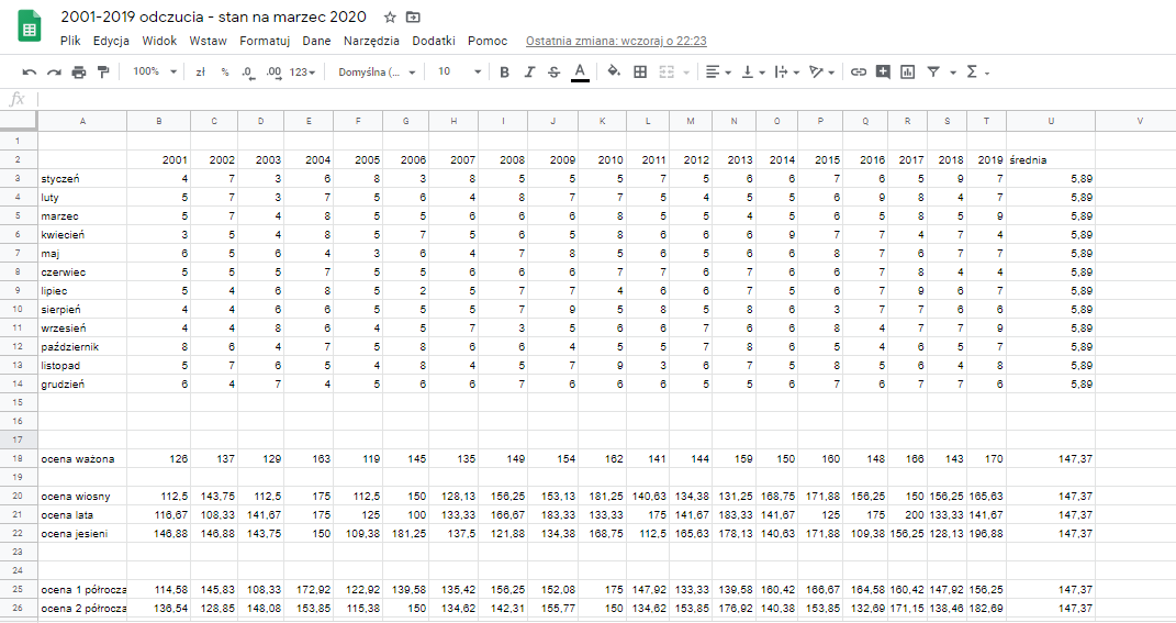 - jesień (do reszty znielubiłem, wszystkie miesiące mocno w dół)