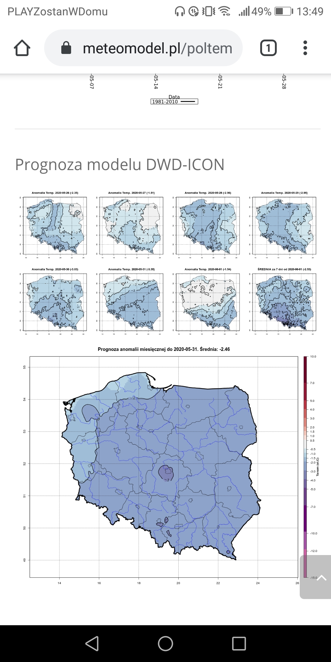 Model DWD-ICON widzi anomalie -2,46K na koniec maja