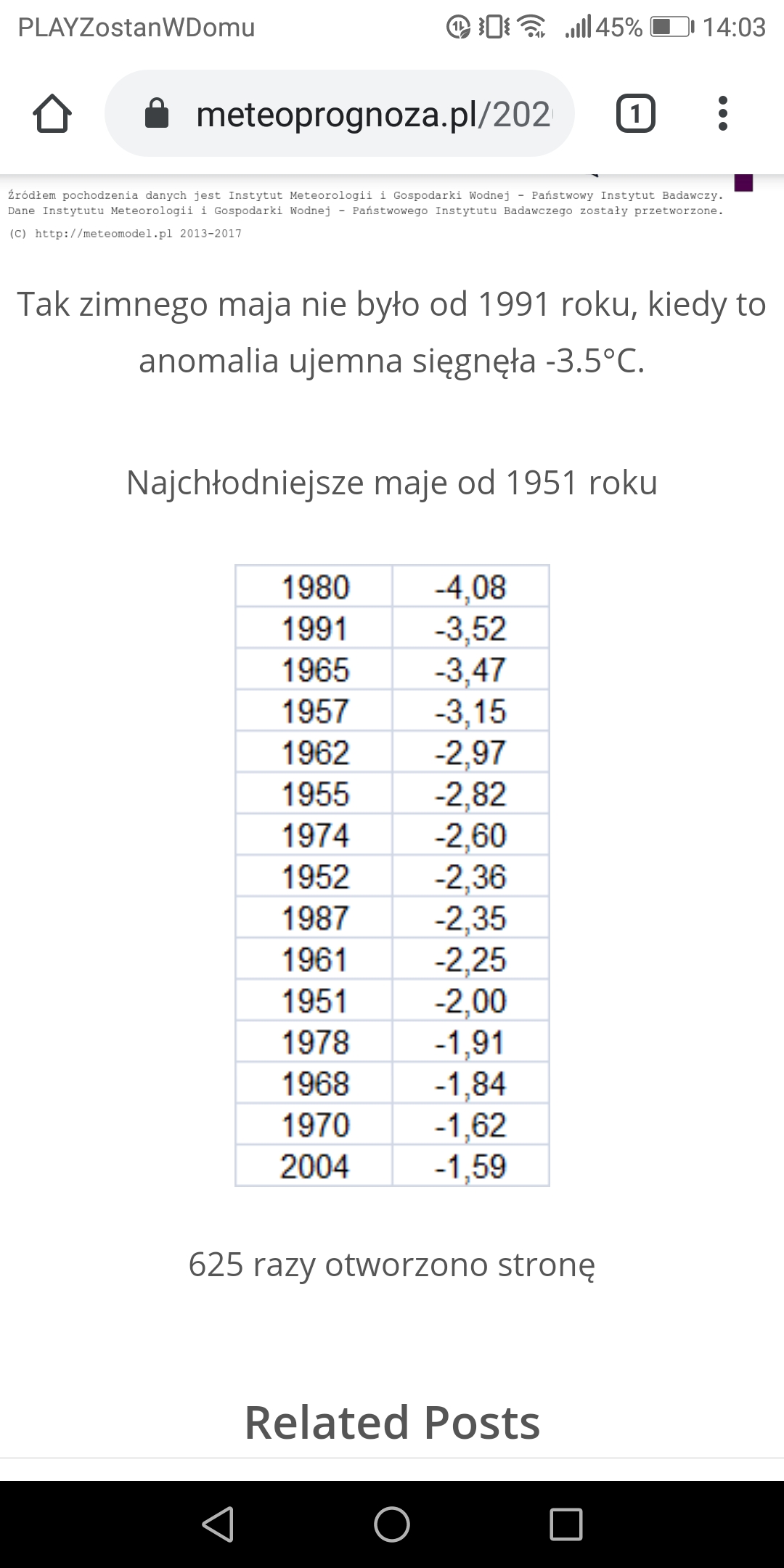 Ostatnio też meteoprognoza w wątku o najzimniejszym maju po 1991, zamieściła listę najzimniejszych majów po 1950-tym