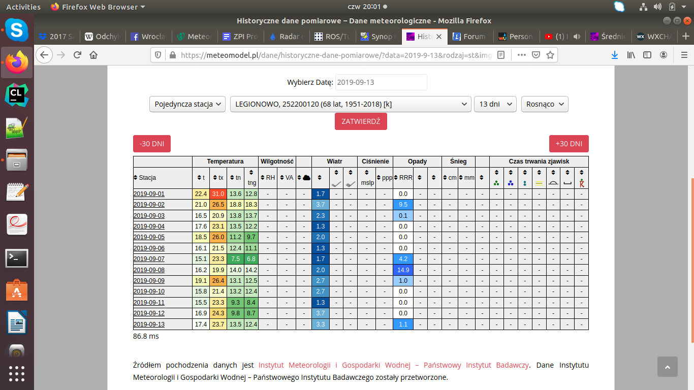 A na stacji realnie koło mnie, było jeszcze lepiej, 18.09 to ja nawet pamiętam deszcz, aż się dziwiłem, że Legionowo ominęło, ale cóż, lokalnie pewnie było.