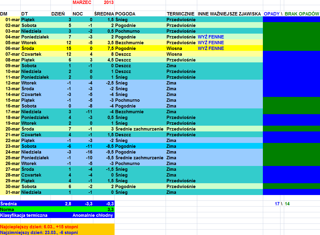 Czas na podsumowanie marca 2013. Był to najzimniejszy marzec od 7 lat. Jednak śniegu na Górnym Śląsku nie było zbyt wiele - większy atak śnieżnej zimy był dopiero w końcówce miesiąca, na Wielkanoc.