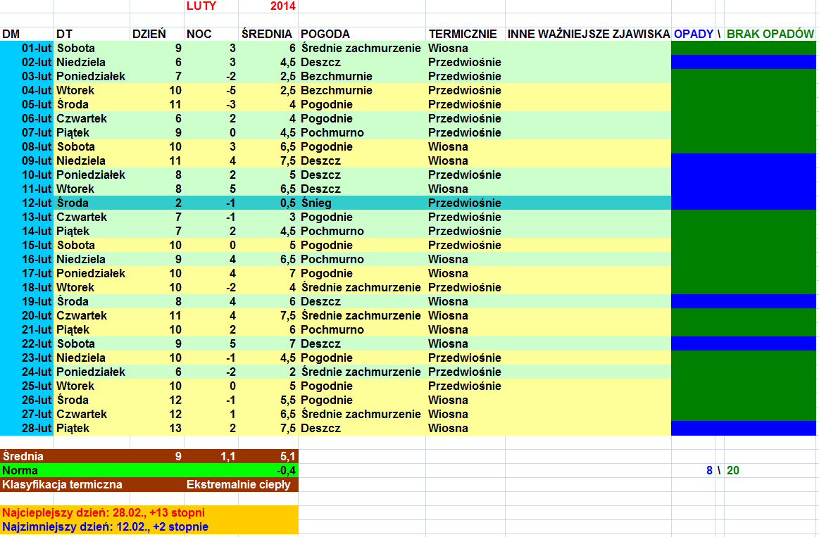 Głównym atutem tego lutego był brak opadów (poza końcówką pierwszej dekady lutego) i duże ilości słońca, przez co odczuwalnie wypadł jako wyjątkowo niezimowy. Luty 1990 był przeciwieństwem tego, przyniósł tydzień prawdziwej zimy ze śniegiem i mrozem, ale reszta miesiąca była prawdziwie wiosenna, a nie lekkie przedwiośnie. Niektórzy porównują te lute, ale ich charakter był jednak zdecydowanie inny. Jestem pewien, że dla niektórych luty 1990, mimo że dużo cieplejszy od 2014, był odczuwalnie bardziej zimowym miesiącem.