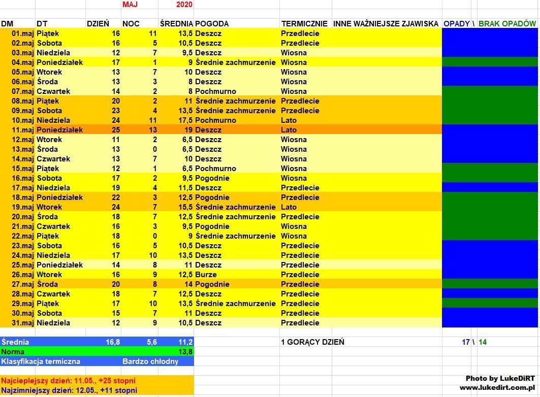 Zaliczyłeś jako bardzo chłodny chyba lekka przesada u mnie byłby lekko ciepły bo trochę powyżej normy. Ale Twoja średnia wieloletnia prawie 3 stopnie wyższa od mojej.