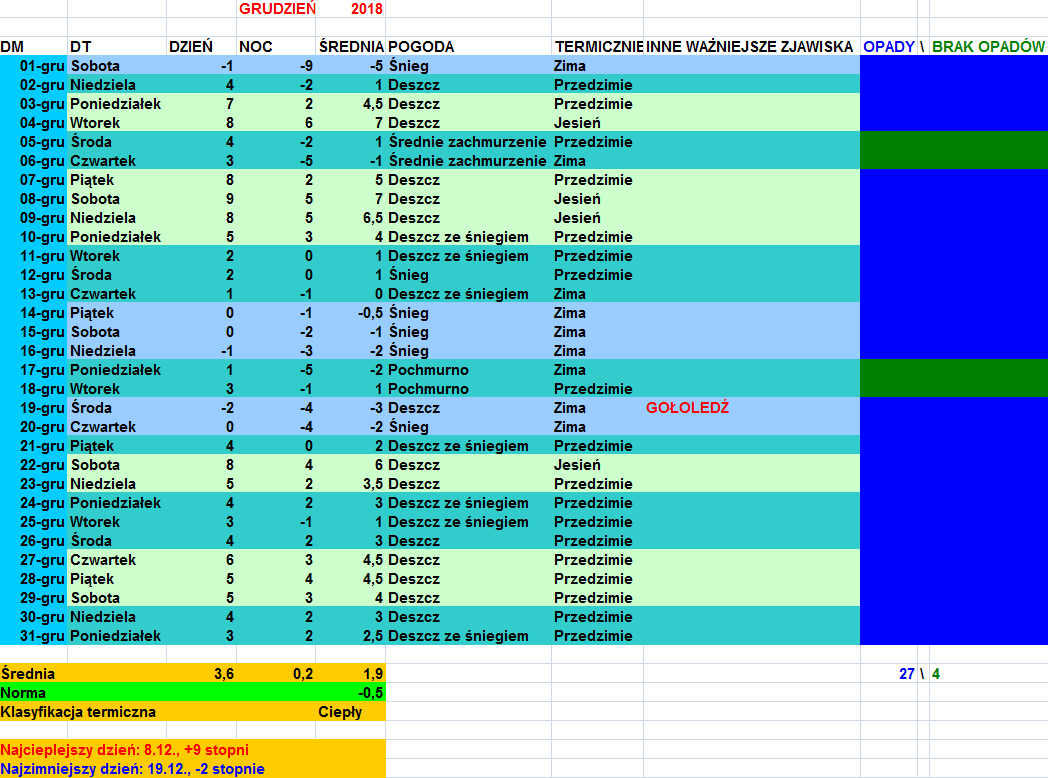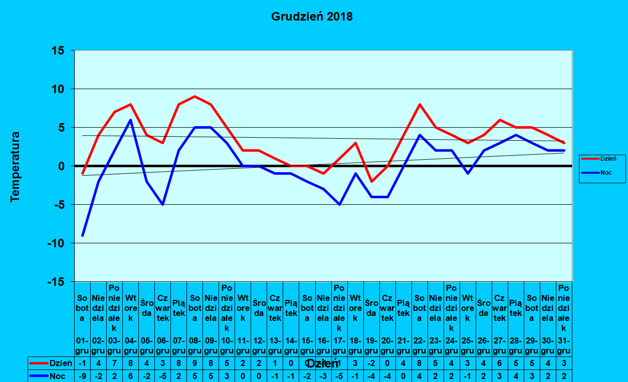 - średnia temperatura mies. 0.77 *C (temp.mierzona co 10 minut)