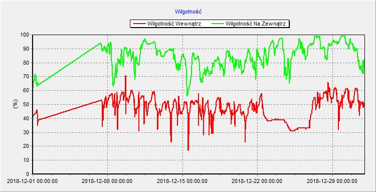 Bezpośrednie dane z mojej stacji pogody (nistety, ucięło dane z pierwszych dni miesiąca)