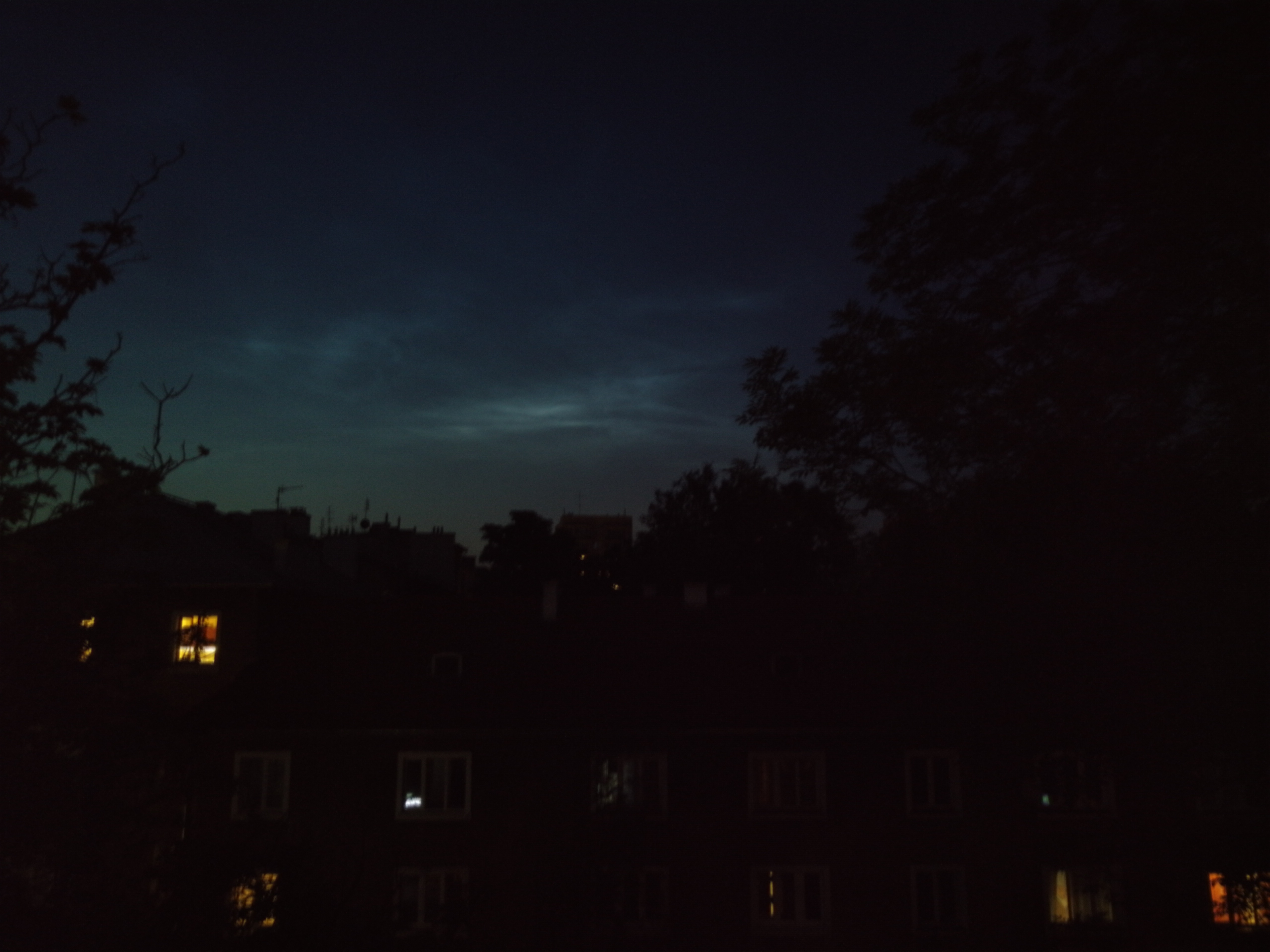 Pierwszy dzień najpoważniejszej czerwcowej fali upałów w historii. Po jeszcze umiarkowanej nocy i poranku temperatura w lekkim wietrze wzrosła do 31,9 stopnia. Wtedy jeszcze było całkiem nieźle, strome schody zaczęły się nazajutrz. Pierwsze dwa zdjęcia zrobiłem przed południem w swoim ogrodzie, a ostatnie (obłoki srebrzyste) z okna mieszkania w Krakowie, które już wtedy zaczynało się gotować.
