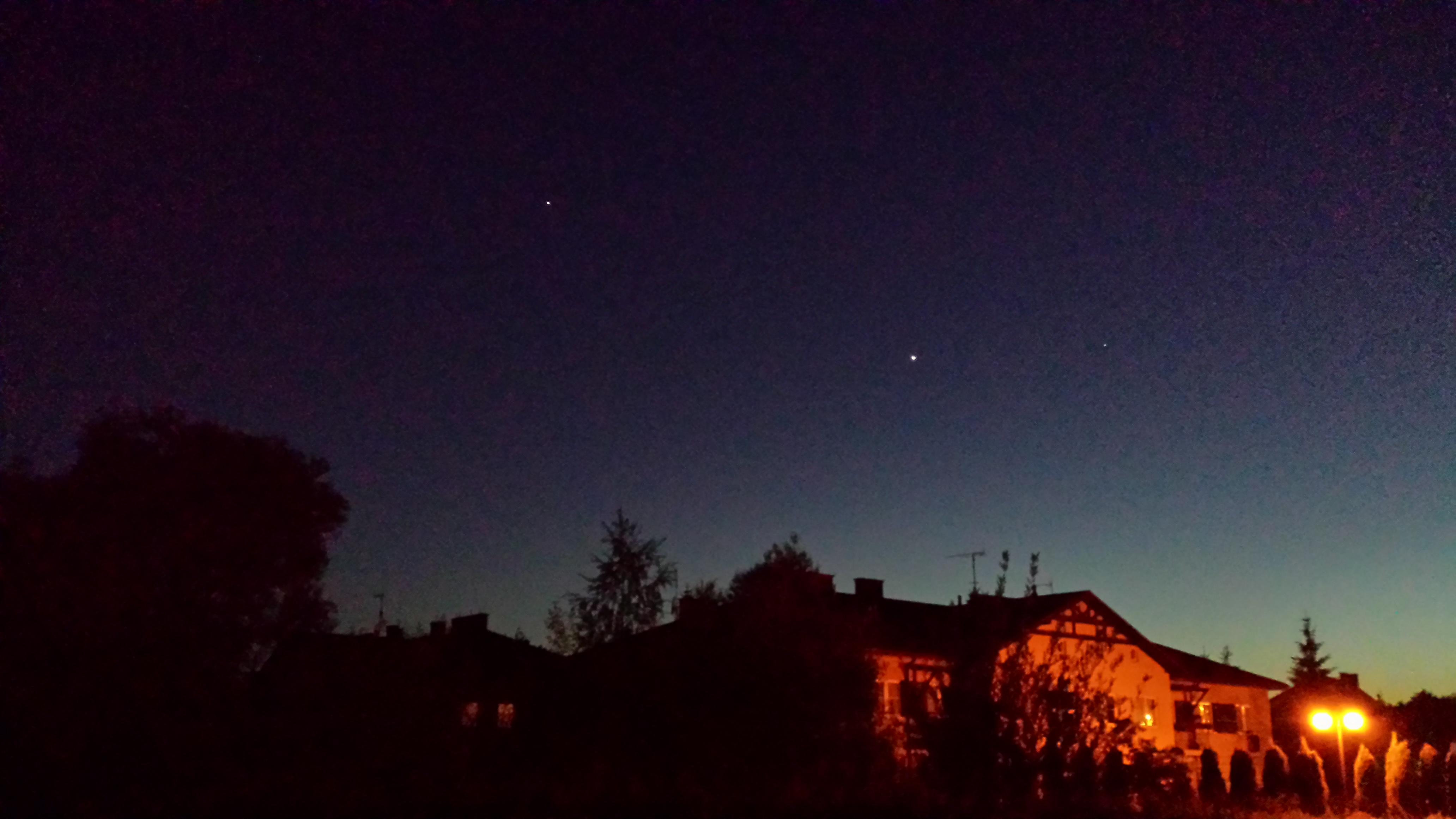 I to jest prawdziwy brylant, gwiazda tego zestawienia. Jeden z dni, w jakich jest się normalnie zakochanym Piątek po Bożym Ciele, a ja odurzony przewspaniałą pogodą, widokiem doskonale krystalicznego nieba i żywą, intensywnie zieloną roślinnością po niedawnych opadach, porobiłem tyle zdjęć, że ciężko było wybrać. Pierwsze zrobiłem podczas brzasku o 3:30. Tak jakby mój organizm przeczuwał, że czeka mnie tak wspaniały dzień i kazał mi go powitać (choć poszedłem jeszcze spać) Na ostatnim zdjęciu widzimy już pogodny wieczór i gonitwę Jowisza za Wenus. Temperatura wyniosła 23,3 stopnia. 10/10, dzień doskonały, a przy tym tak przyjemny... Ach ta nostalgia