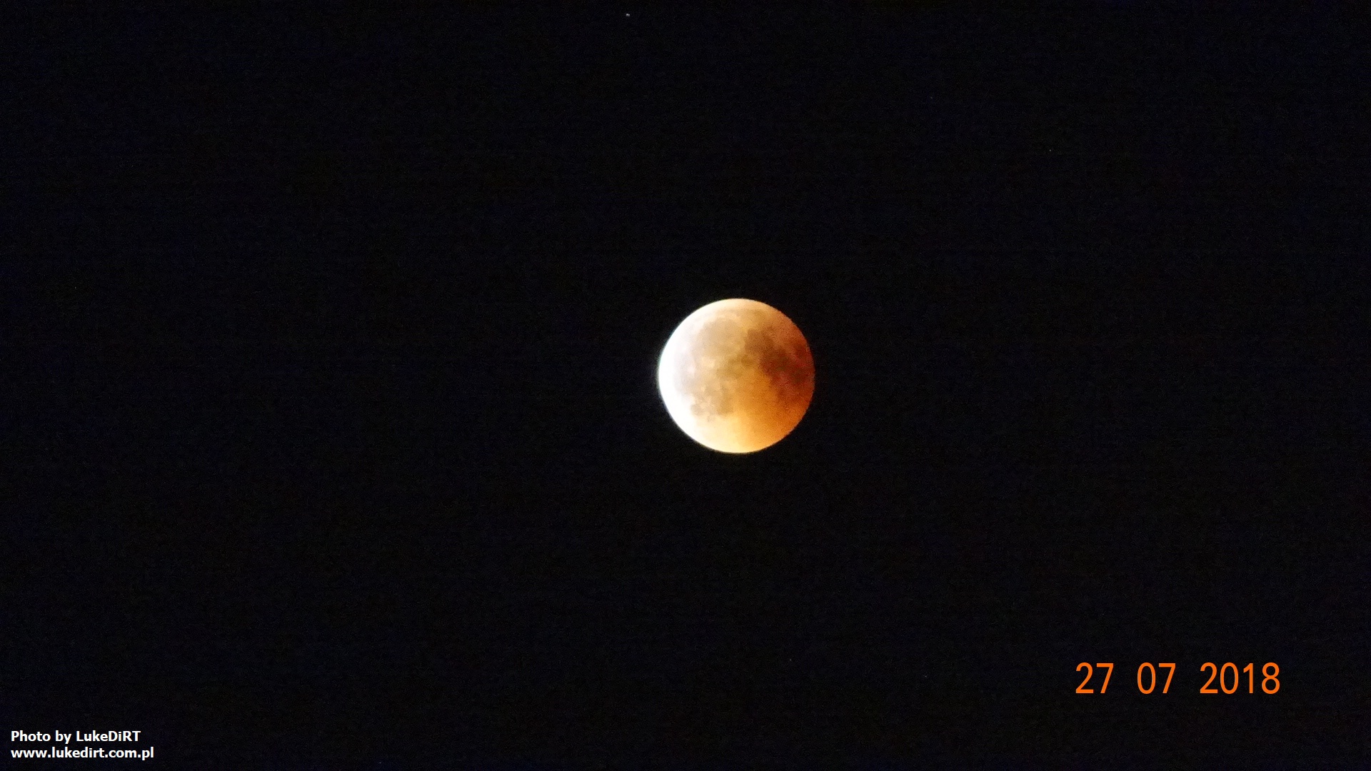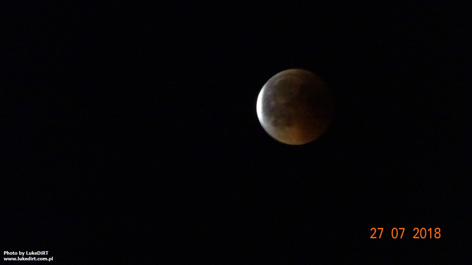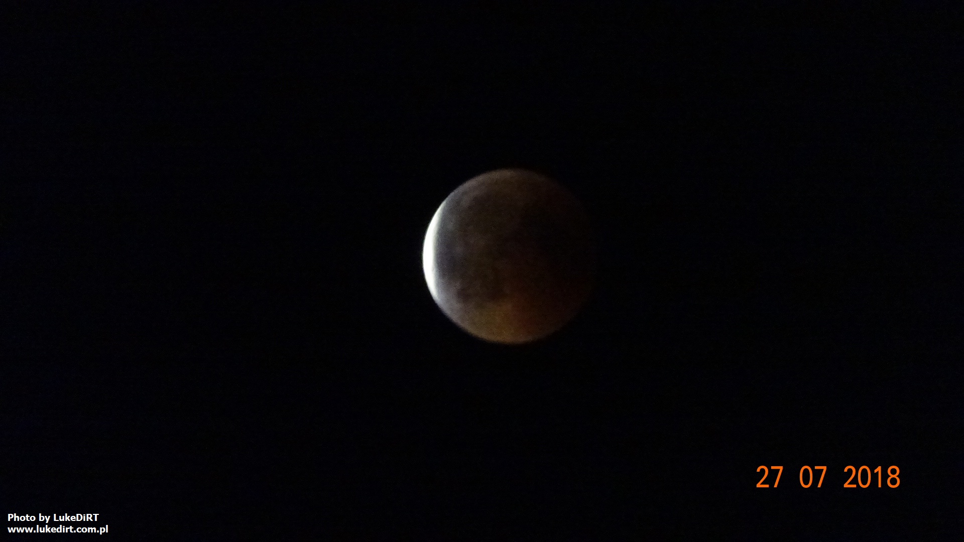 O godzinie 21:30 zaczęła się faza całkowita. Nastąpił wręcz nierealny nastrój, kiedy mogłem być świadkiem tak pięknego spektaklu. Grające świerszcze i szumiące w wysokich trawach jeże dodawały mi towarzystwa. Wszyscy sąsiedzi powychodzili z domów, połakomili się nawet na widok z mojego teleskopu Można było wyraźnie oglądać przesuwający się cień Ziemi.