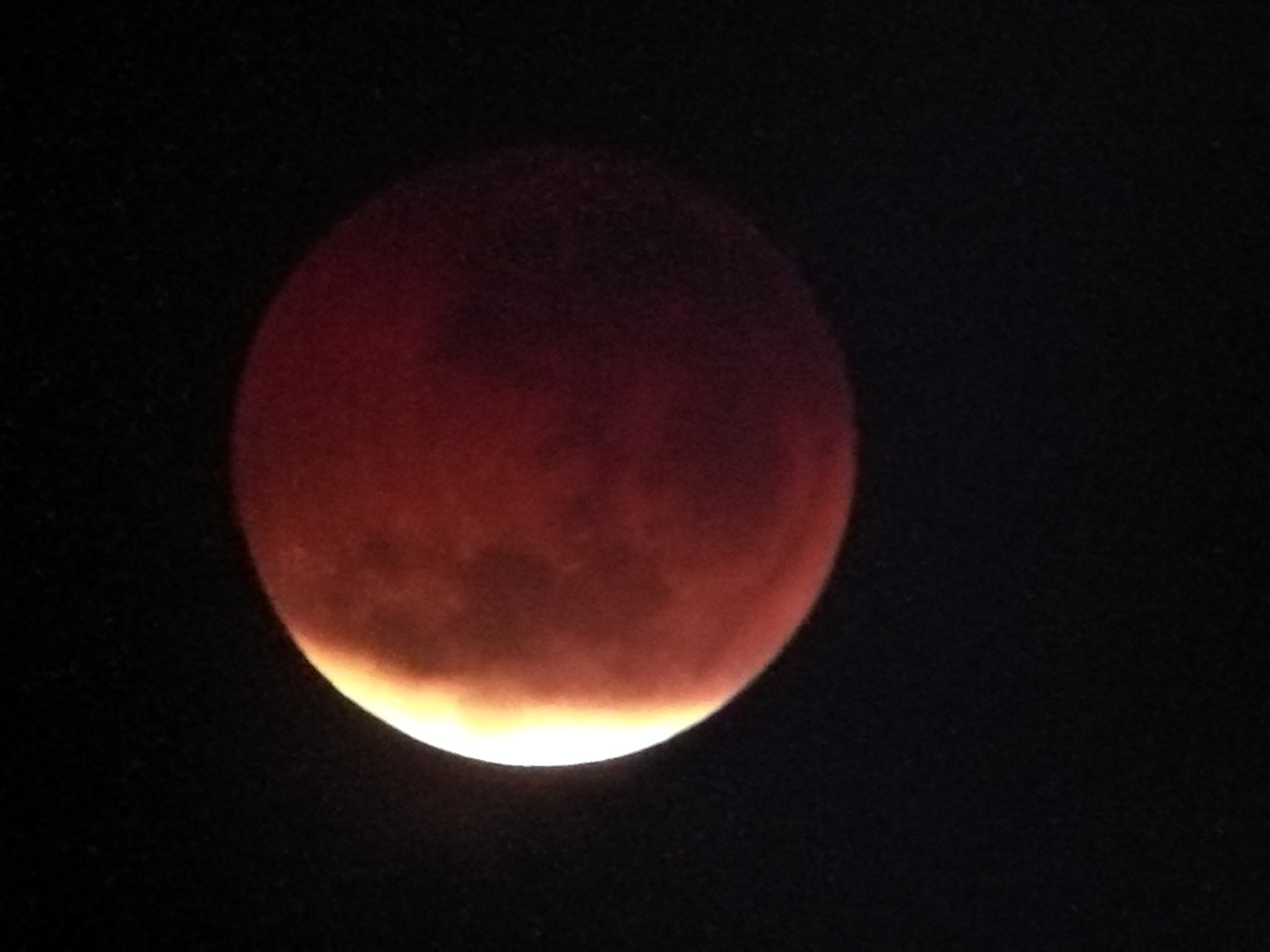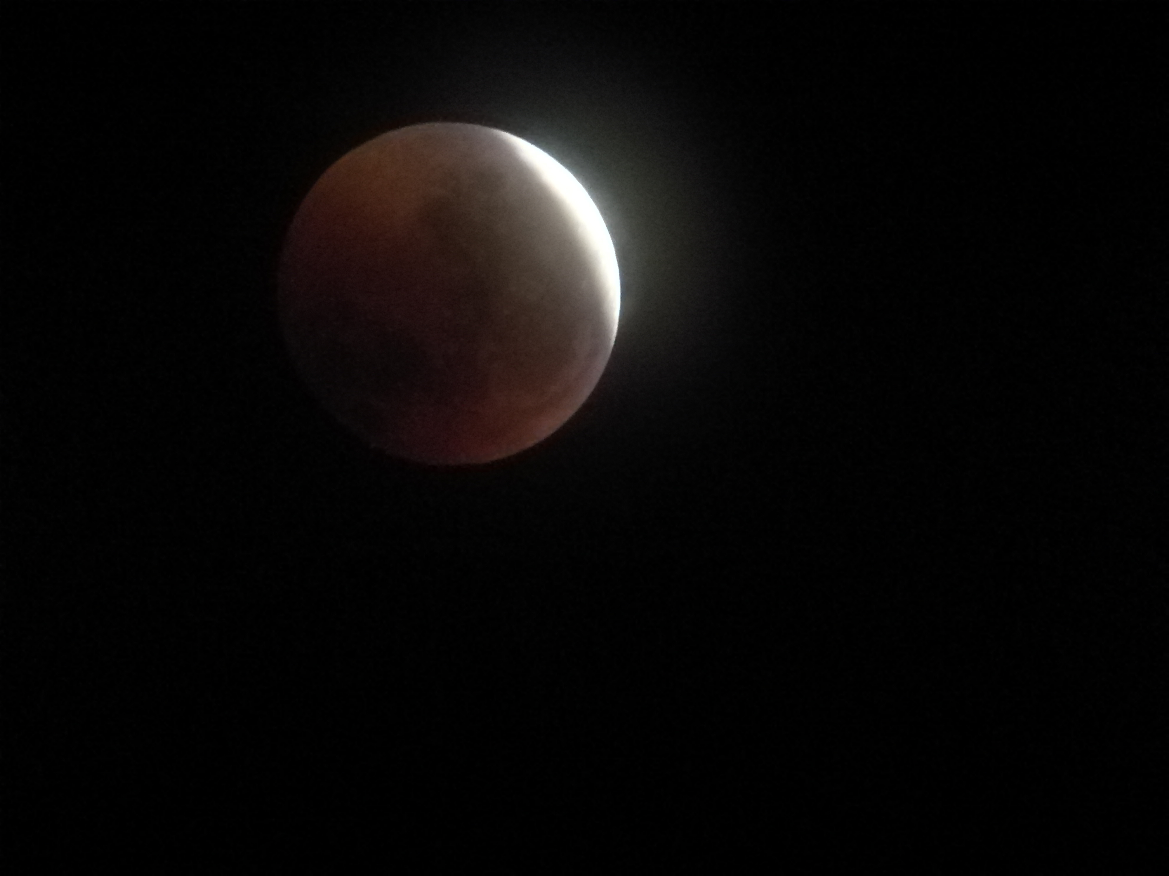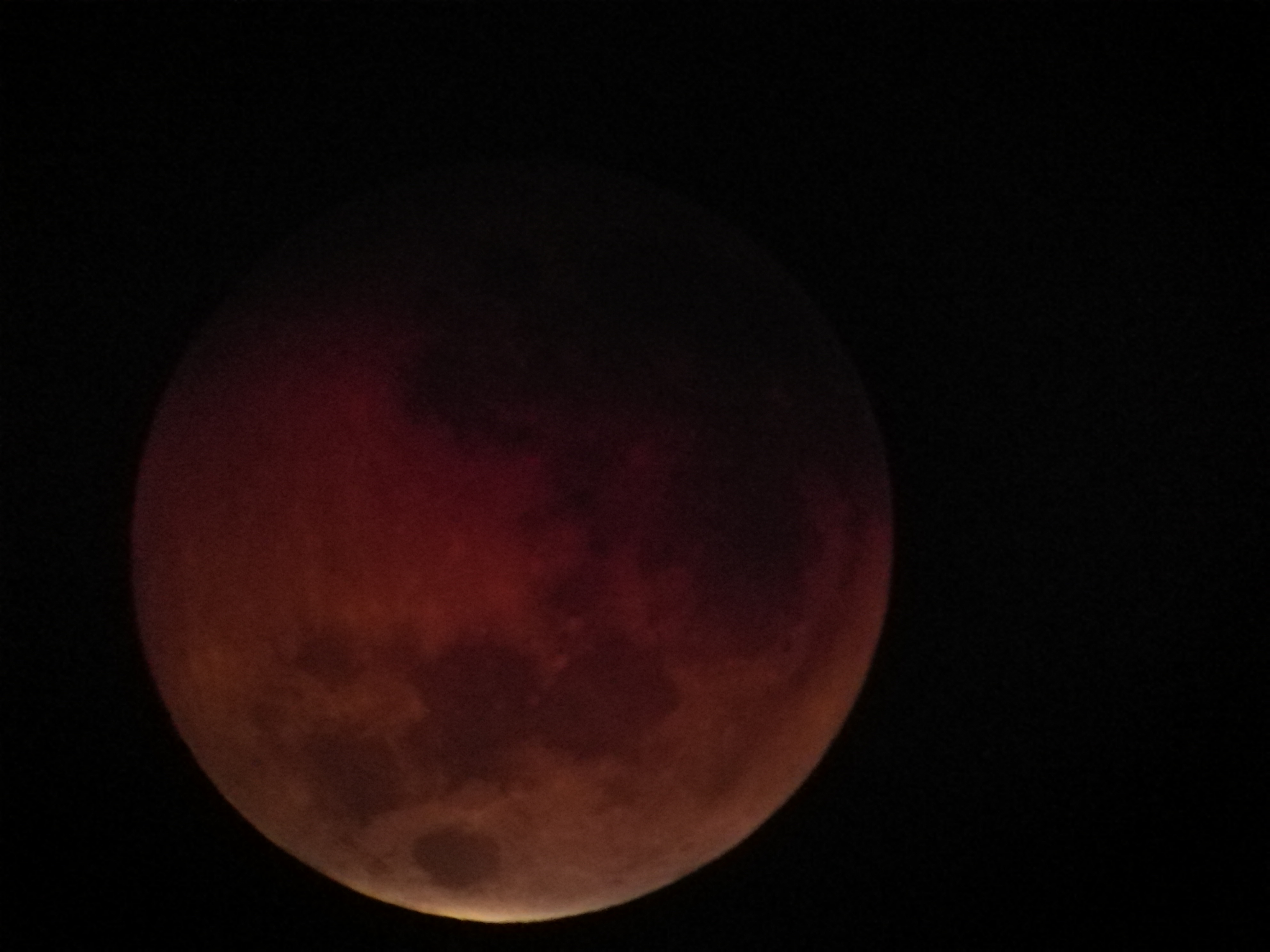 O godzinie 21:30 zaczęła się faza całkowita. Nastąpił wręcz nierealny nastrój, kiedy mogłem być świadkiem tak pięknego spektaklu. Grające świerszcze i szumiące w wysokich trawach jeże dodawały mi towarzystwa. Wszyscy sąsiedzi powychodzili z domów, połakomili się nawet na widok z mojego teleskopu Można było wyraźnie oglądać przesuwający się cień Ziemi.