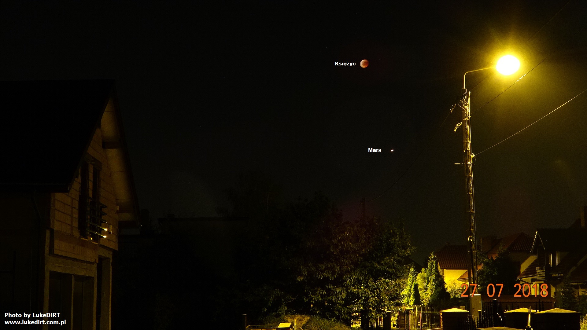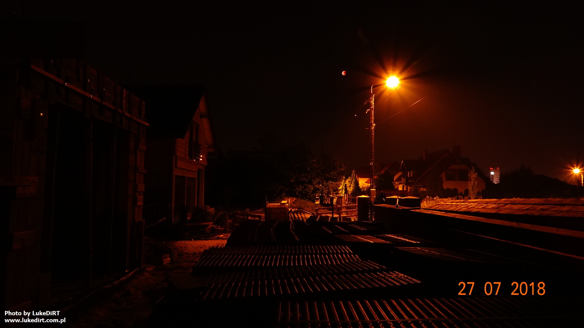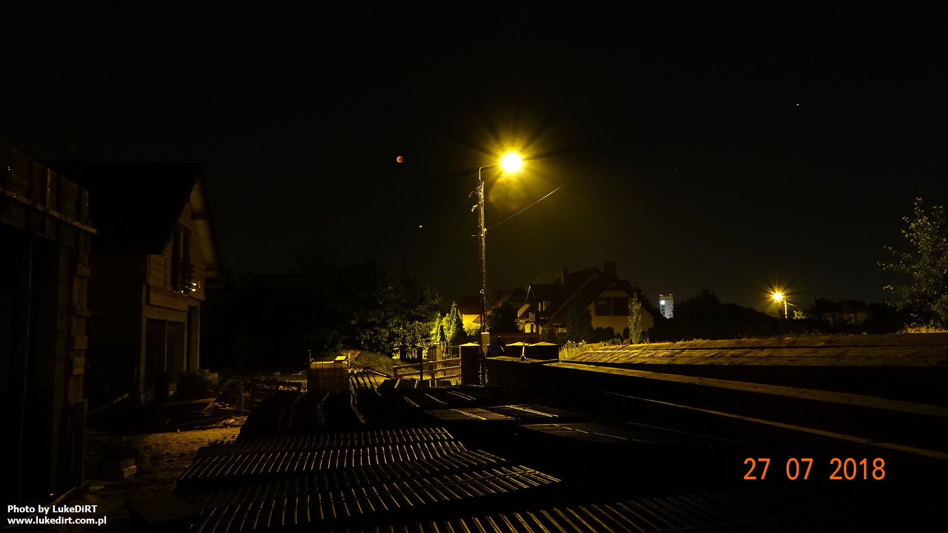 Noc 27 lipca 2018 roku została w astronomicznych środowiskach okrzyknięta mianem "Czerwonej Nocy". Wtedy bowiem, oprócz doskonałej widoczności Marsa, którego opozycja za sprawą odległości od Ziemi była najbardziej spektakularną od czasu Wielkiej Opozycji z sierpnia 2003, mogliśmy podziwiać zaćmiony Księżyc, przybierający krwistoczerwnoną barwę. Takie zaćmienia zdarzają się relatywnie często - ostatnie obserwowaliśmy 28 września 2015 - ale gorąca, letnia noc zdawała się wygodniejszą do obserwacji od zimnego, jesiennego poranka, kiedy dodatkowego uczucia zimna dodawały widoczne na niebie zimowe gwiazdozbiory. Po cierpliwym oczekiwaniu, wczesnym wieczorem w piątek 27 lipca pogoda postanowiła ze mnie zażartować, bo na wschodzie, w tym miejscu, gdzie miał pojawić się Księżyc, nagle wyrósł piękny kalafiorowaty cumulonimbus, wydający z siebie złowrogie pomruki. Na szczęście była to tylko jedna z wielu typowych dla lata 2018 słabych konwekcji i w porze zachodu Słońca niebo już się oczyściło, a ja mogłem przygotować swój sprzęt: