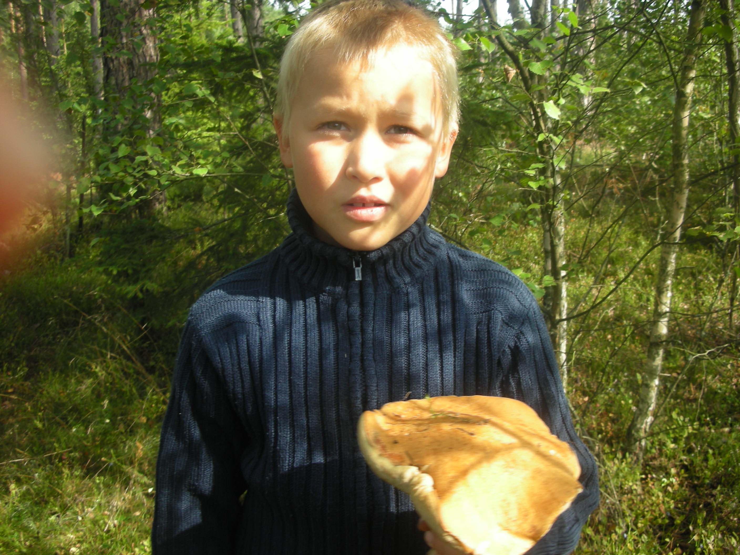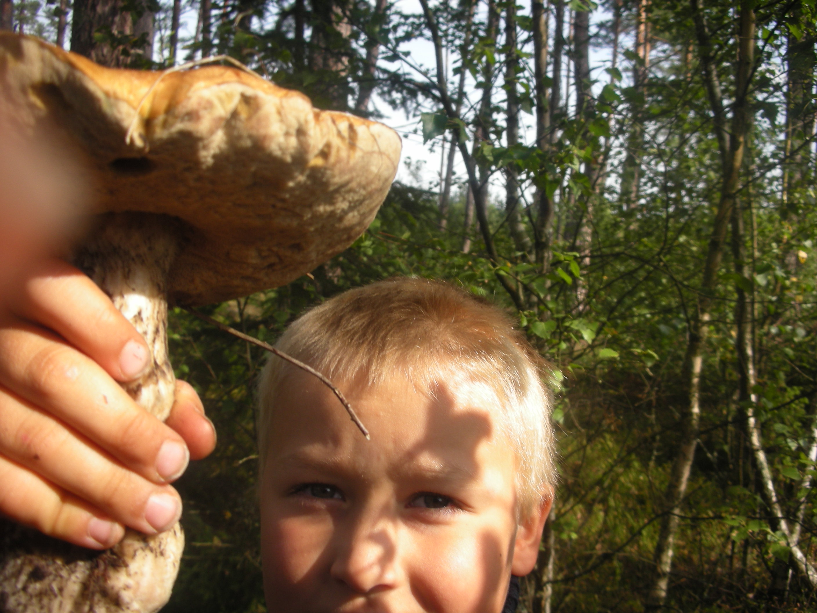 To miał być zwyczajny spacer po okolicy, jakich robiliśmy tam pełno także i w poprzednich wyjazdach, chociaż tym razem z powodu zimnicy były one częstsze, bowiem były główną alternatywą do kąpieli w jeziorze. Jednak w trakcie spaceru dość niespodziewanie mnie dziadkowie zaciągnęli do środku lasu, nawet nie wiedziałem o co chodzi. Oczywiście o istnieniu grzybów wiedziałem już wcześniej, lecz nigdy nikt mnie wcześniej nie zachęcał do zbierania. Tym razem idąc przez leśne krzaki sam natknąłem się na widoczny na poniższym zdjęciu okaz...