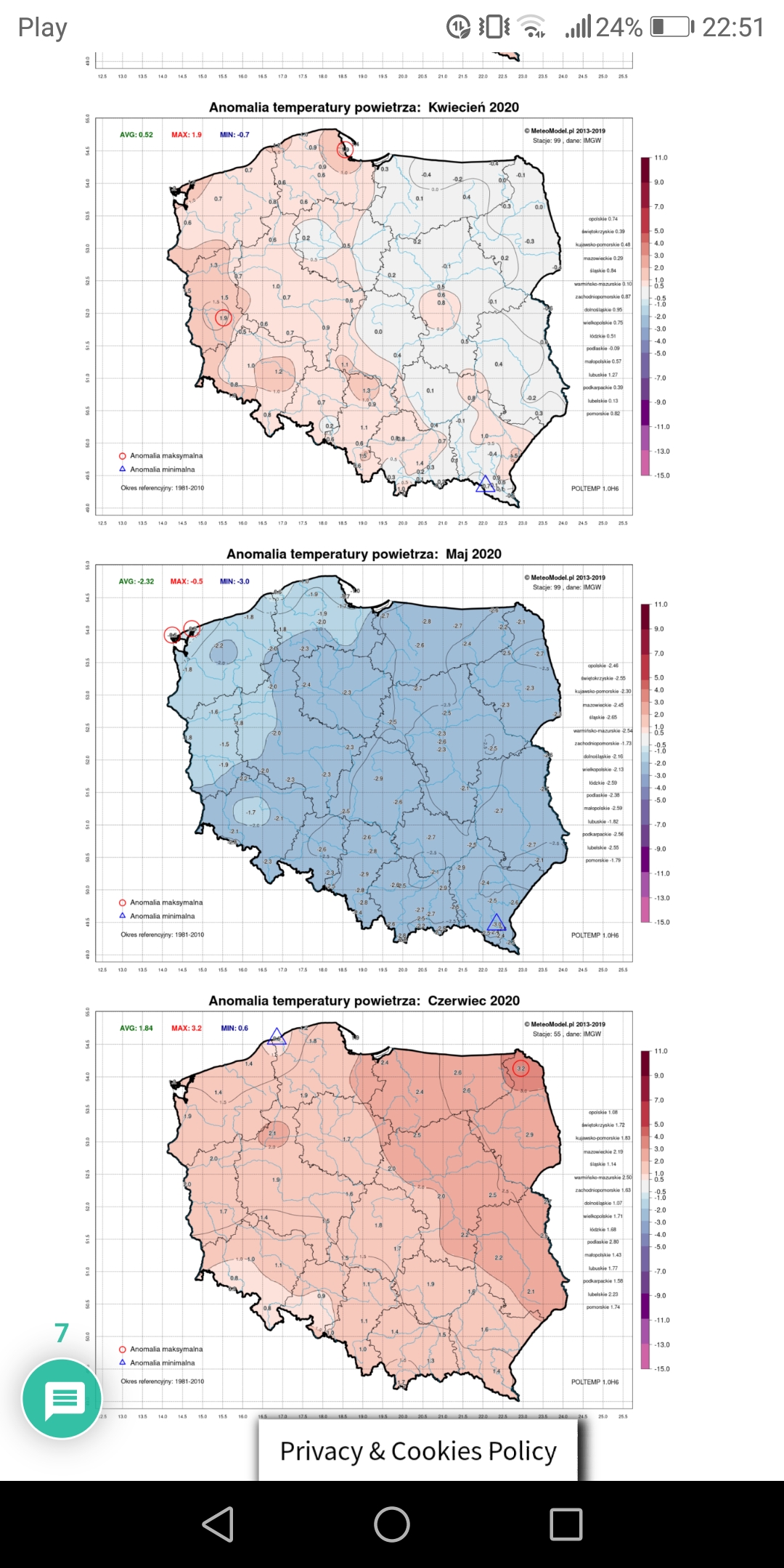 I to mimo bardzo ciepłej pierwszej połowy marca. U mnie odchył ruchomy za okres 21 marca - 18 czerwca wyniósł(90 dni ) -0,43 K(i to względem refa 61-90).