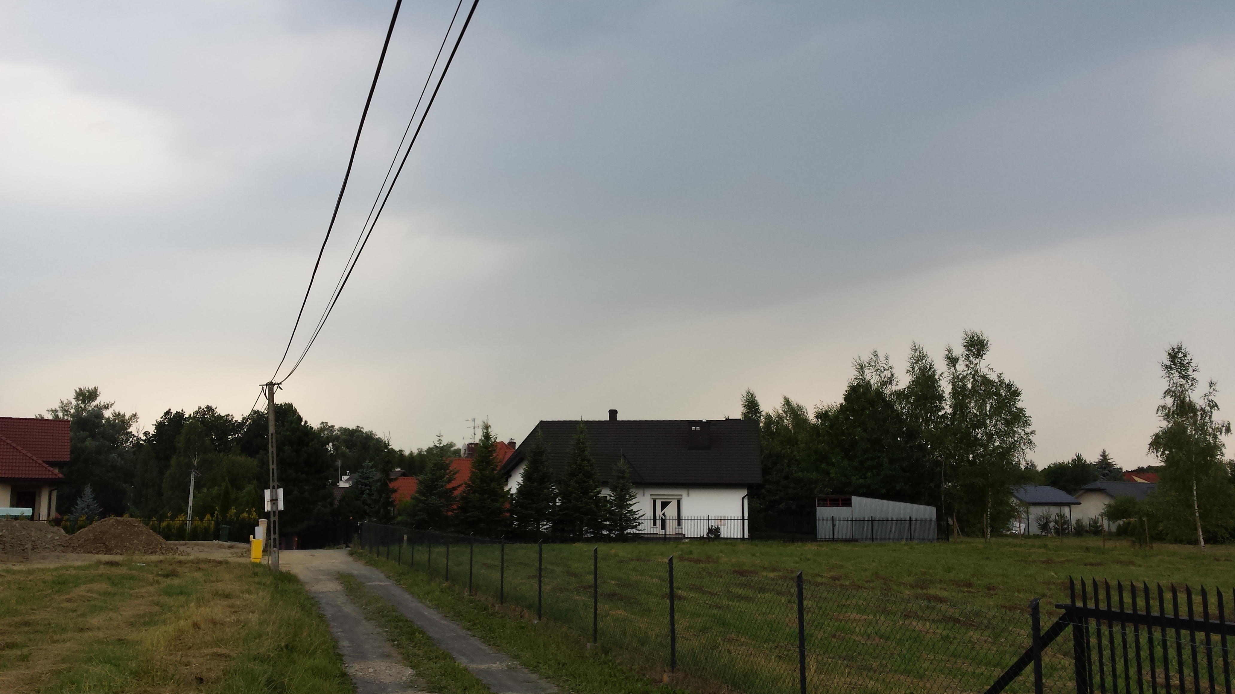 2 sierpnia 2017 roku rozpoczął się ciężką, tropikalną nocą ze spadkiem temperatury do zaledwie 19 stopni. Rano zaczęło się podobnie, ale z nieco bardziej przymglonym niebem. Znowu o 11:00 notowano już prawie 31, a kolejnych kilka godzin tylko podkręcało skwarną atmosferę. Nie było chyba w moim życiu drugiego tak aktywnego miesiąca jak lipiec 2017 i takiego duetu jak czerwiec-lipiec tego roku. Tym bardziej wielbię te miesiące. Teraz jednak drugi dzień z rzędu nigdzie nie wychodziłem, co zdarzyło mi się pierwszy raz od dawna, chyba od kwietnia. Ale z jakże innego powodu niż wtedy... Dzień był upalny i temperatura sięgała prawie 33 stopni, po pewnym czasie przyszło jednak złagodzenie i niebo się zachmurzyło. Zbierało się na burzę i krótko po 15:00 poczułem spadek temperatury. Odnosiłem wrażenie, że pójdzie bokiem i wybrałem się do sklepu na rowerze. To zdjęcie zrobiłem wyjeżdżając: