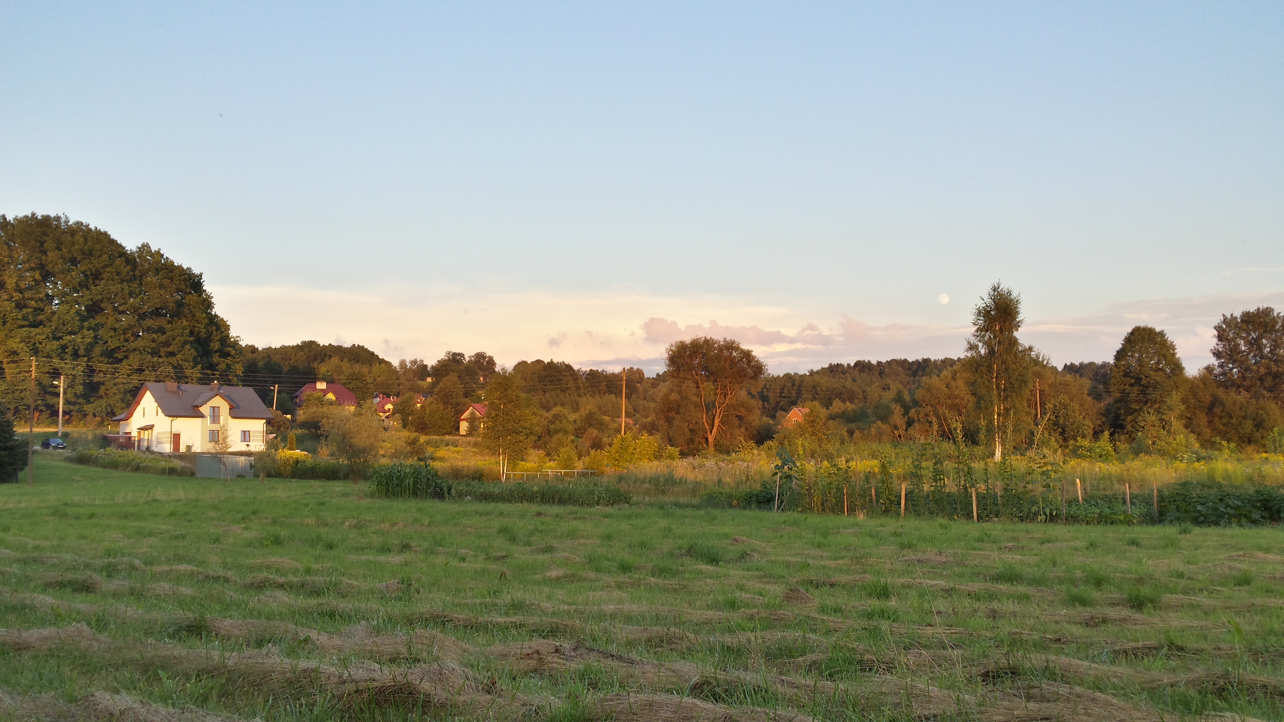Dopiero wieczorem zebrałem w sobie siły na jakąś przejażdżkę, bo wcześniej w zasadzie nie było na to szans. Temperatura 31 stopni w połączeniu ze zmęczeniem upałem, skutecznie mnie rozleniwiła. Wieczór był za to w miarę sympatyczny i nie przedłużał skwaru w nieskończoność. Temperatura nie odbiegała w nim zbytnio od tych, jakie notuje się w ostatnich dniach - 22 stopnie o 22:00 to już niezły wynik w porównaniu z poprzednimi nocami. Księżyc ładnie się uśmiechał :)
