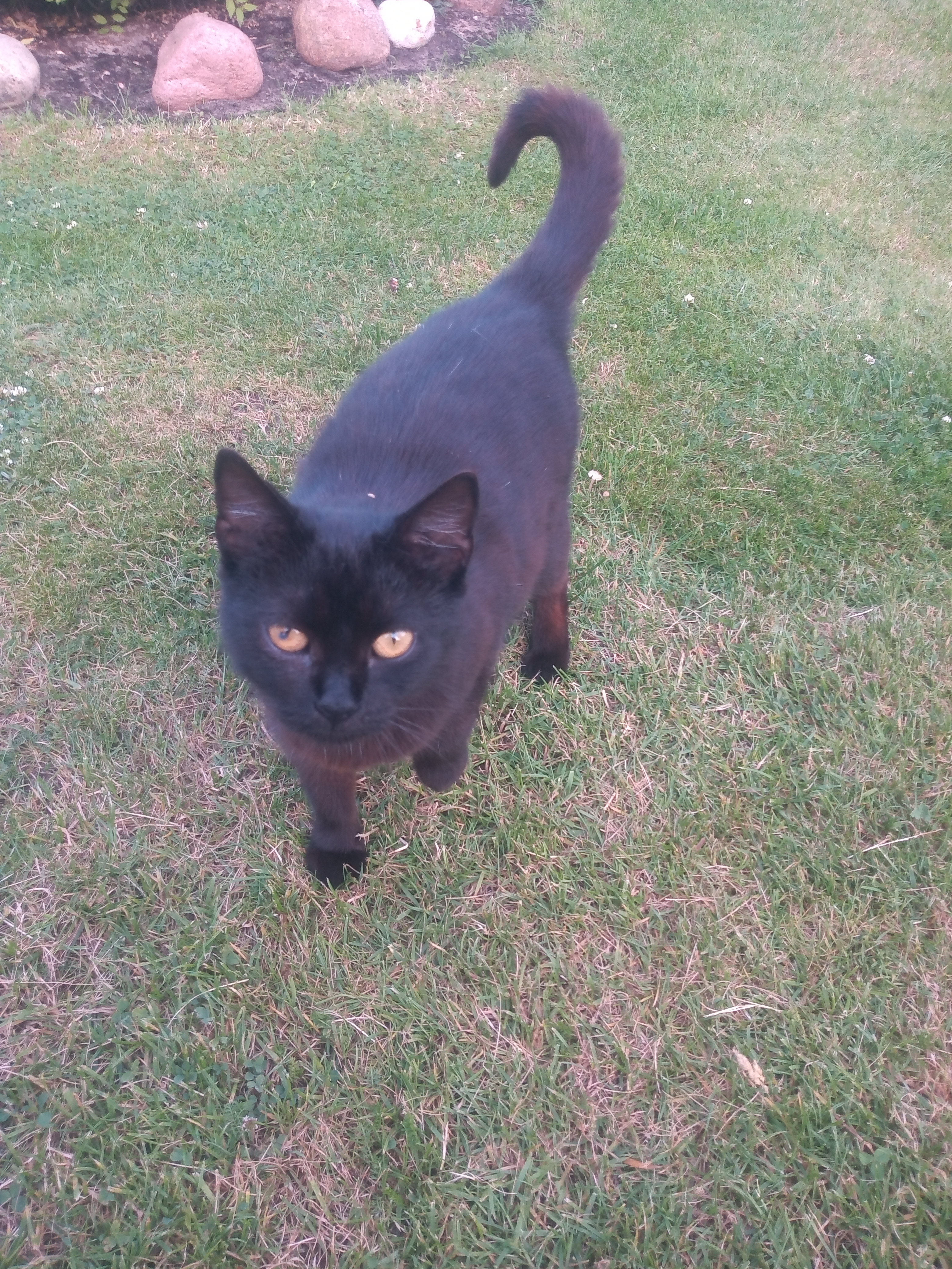 To kot moich sąsiadów, uwielbia polować na myszy i małe ptaki w okolicy Często przychodzi do mojego ogrodu, czym doprowadza mojego psa do szału To młody kotek, sąsiedzi mają go bodajże od trzech lat. Nazywam go Kotką Śnieżką