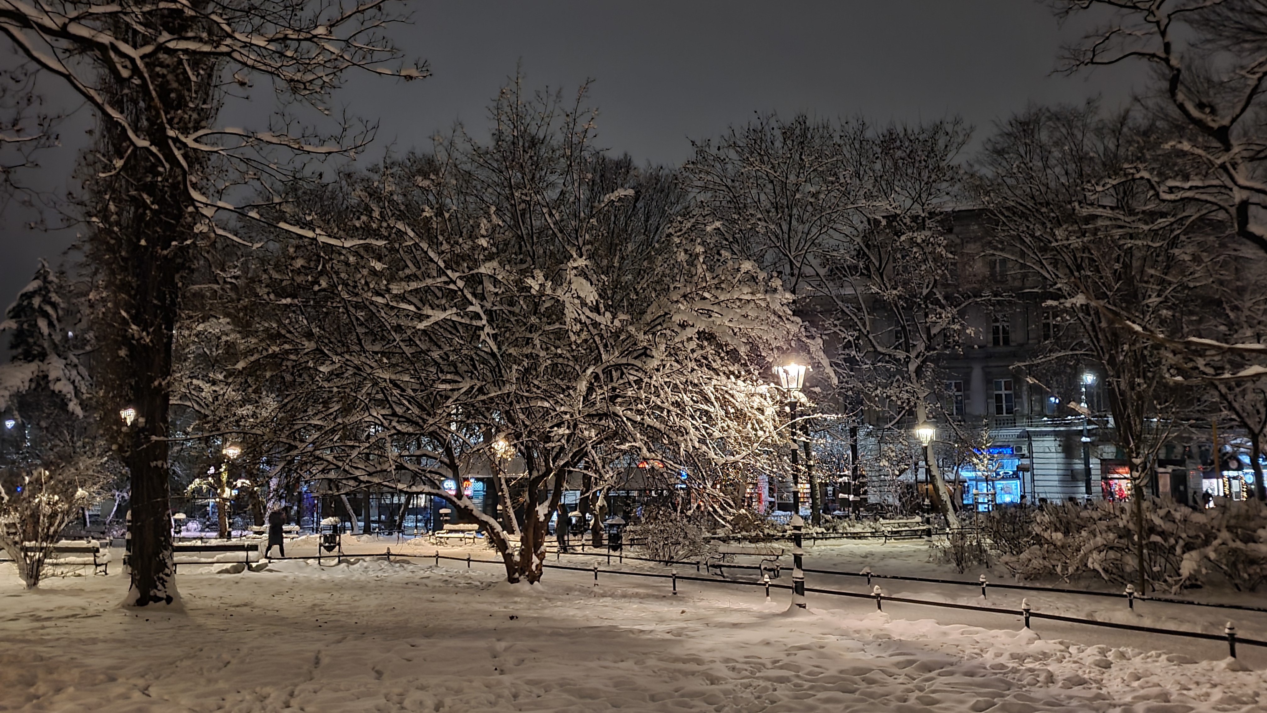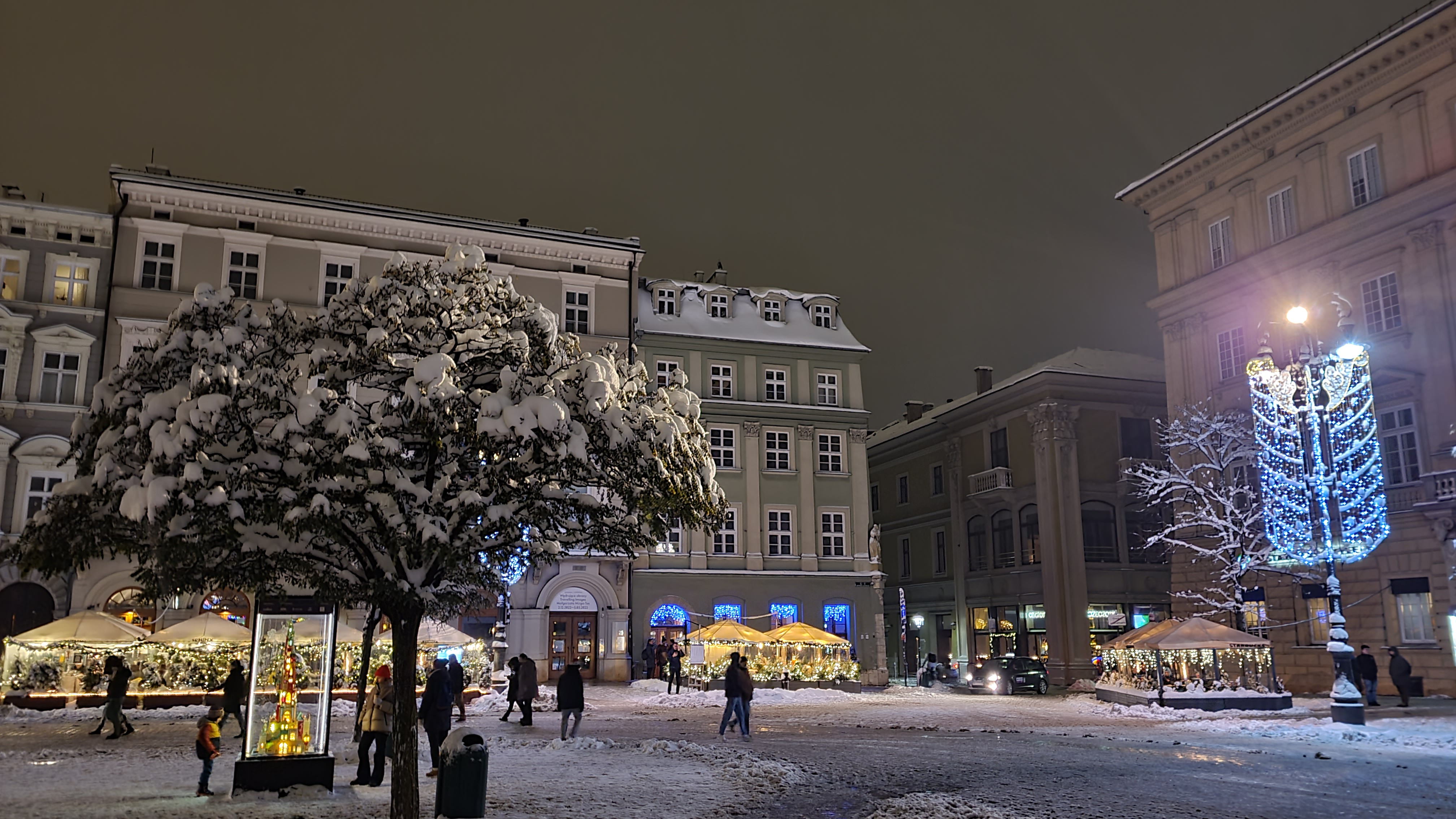 Stało się coś tak wyczekiwanego, że aż trudnego do uwierzenia. Centrum Krakowa, miasta tak często zwalczającego śnieg, pokryło się białą szatą. W końcu w grudniu, w okresie przedświątecznym, przepiękne widoki śniegu oblepiającego wszystko dookoła, stały się udziałem dawnej stolicy Polski. Choć spędziłem tu mnóstwo zimowych dni, nigdy nie widziałem czegoś choćby podobnego. Widząc grupę dzieci w wieku 7-8 lat, uświadomiłem sobie, że jest to dla nich pierwszy taki grudzień w życiu. Po roku 2012, a może i nawet 2010, nie miałbym tak wspaniałej jak dzisiaj okazji do podziwiania Starego Miasta w takich okolicznościach, chłonąc dodatkowo nastrój tworzony przez świąteczny jarmark i iluminacje... Zresztą zobaczcie sami
