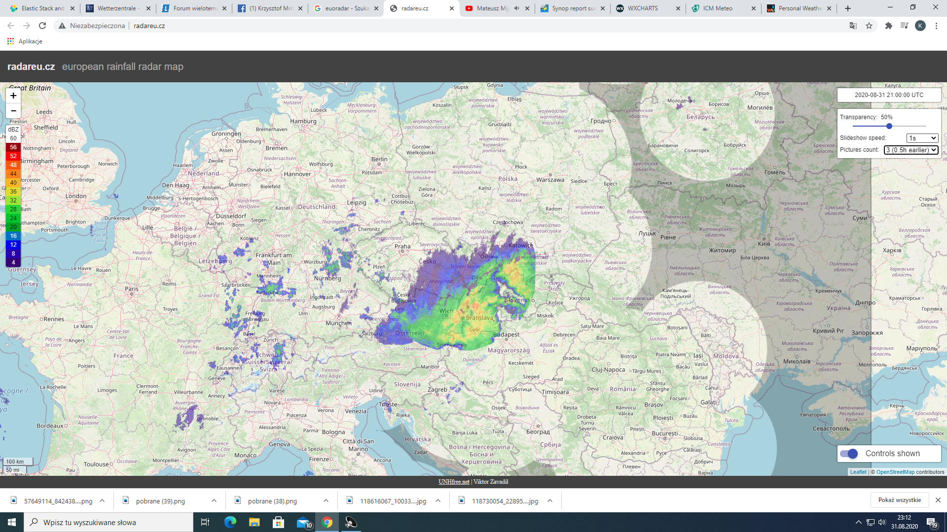 W odróżnieniu do pluchy sprzed 3 miesięcy, w ciągu dnia mają być trochę wyższe temp. (podczas przejściu niżu Izolda było maks. 12-13, góra 14 C). Niektóre prognozy nawet na jutrzejszy dzień widziały pod +20 C i później z niepokojem zobaczyłem, że rozpogodziłoby się po południu, a później zachodziłaby nawet szansa pojawienia się grzmotów i błysków... Jednak na takie ewidentnie niżowe dni, chcę trochę niższe temp. Obecnie dla rejonu Krakowa jest dużo lepiej: prognozy widzą 15-18 C (więc chłodno, ale nie jakoś bardzo zimno) i deszcze do końca wieczora. Nieprzyjemny, jak nieprzyjemny- o takich właśnie "paskudnych" dniach marzyłem w ciągu wakacji (jak miało dochodzić do załamań pogodowych). Zresztą z tego co się orientuję, to ma być krótki przerywnik, bo w następne dni (lokalnie od środy, a w większości kraju od czwartku) temp. mają przekraczać +20 C i niekiedy osiągać nawet koło +25 C. Nie lubię, jak się pogoda psuje, ale jak ma jutrzejszy dzień tak obiecująco wyglądać, to go z pewnością przyjmę z otwartymi ramionami/rękami.