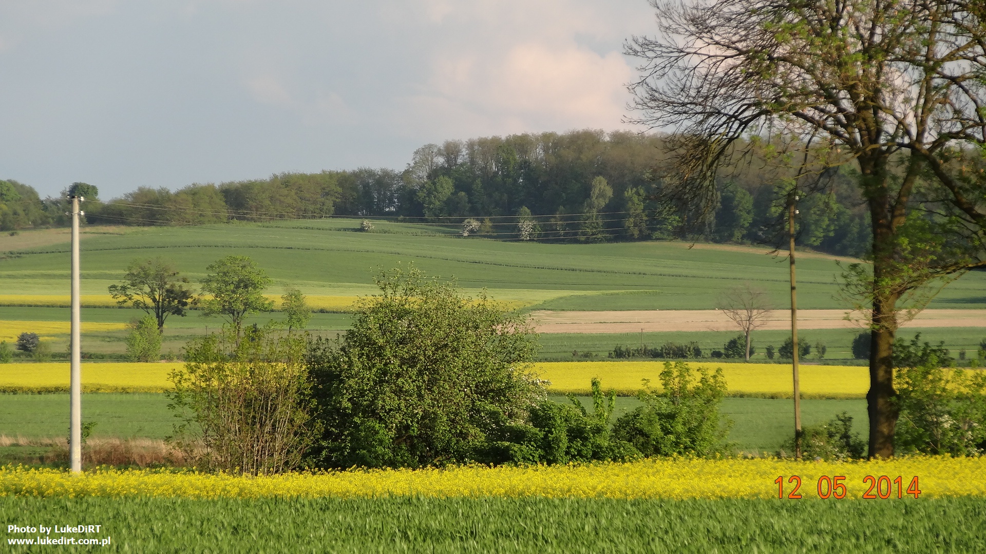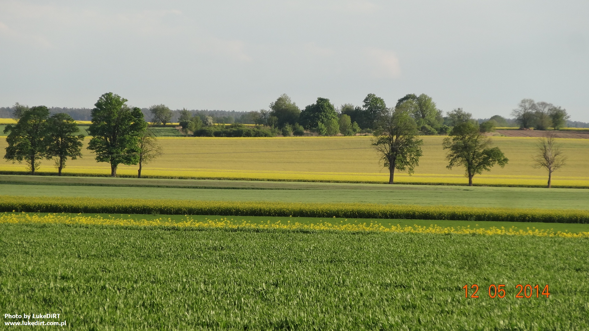 Bardzo ładny krajobraz, taki sielankowy i spokojny :) Widzę że duże dęby jeszcze nie ukończyły w zupełności procesu listnienia, u mnie także jakieś prześwity były wtedy jeszcze widoczne. Szkoda że w mojej okolicy nie rośnie rzepak, te uprawy wyglądają na zdjęciach bardzo spektakularnie, wnoszą dodatkowy kolor :)