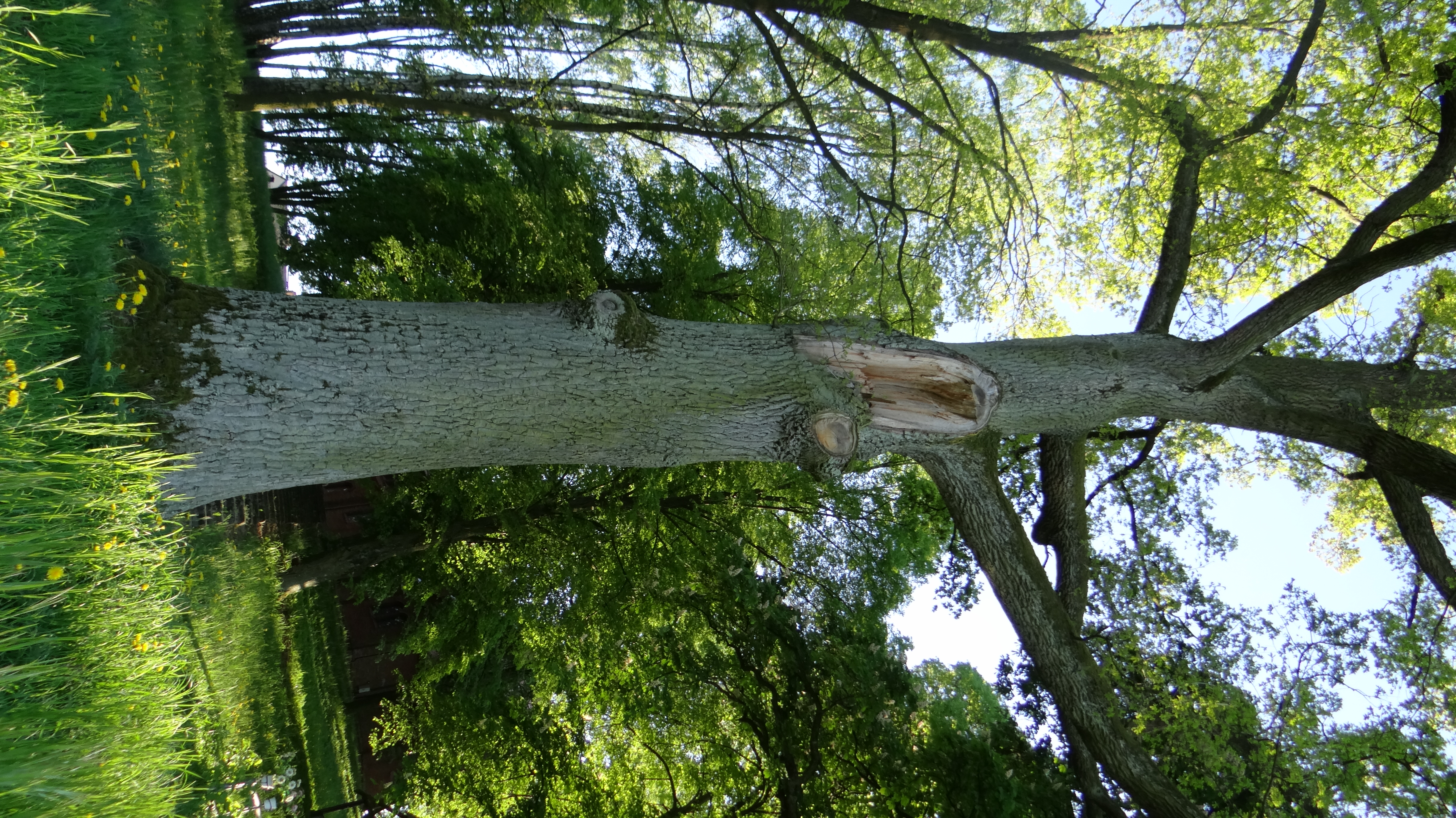 Dąb, w 2012 roku wskutek uderzenia pioruna stracił jeden z grubszych konarów.