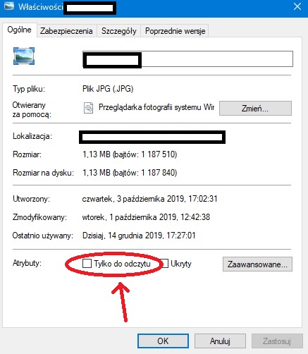 Proponuję wyłączyć we właściwościach zdjęcia opcję "tylko do odczytu", może to od tego zależy :?:
