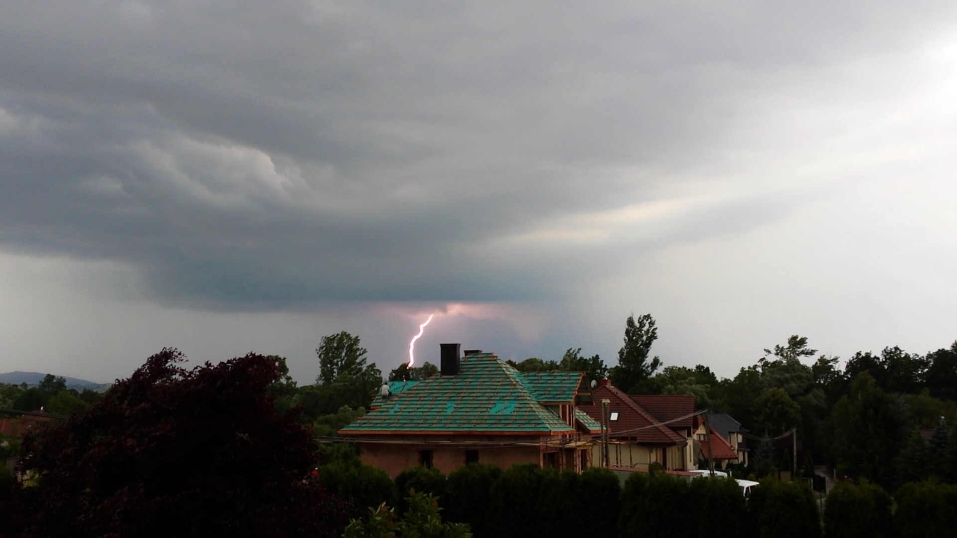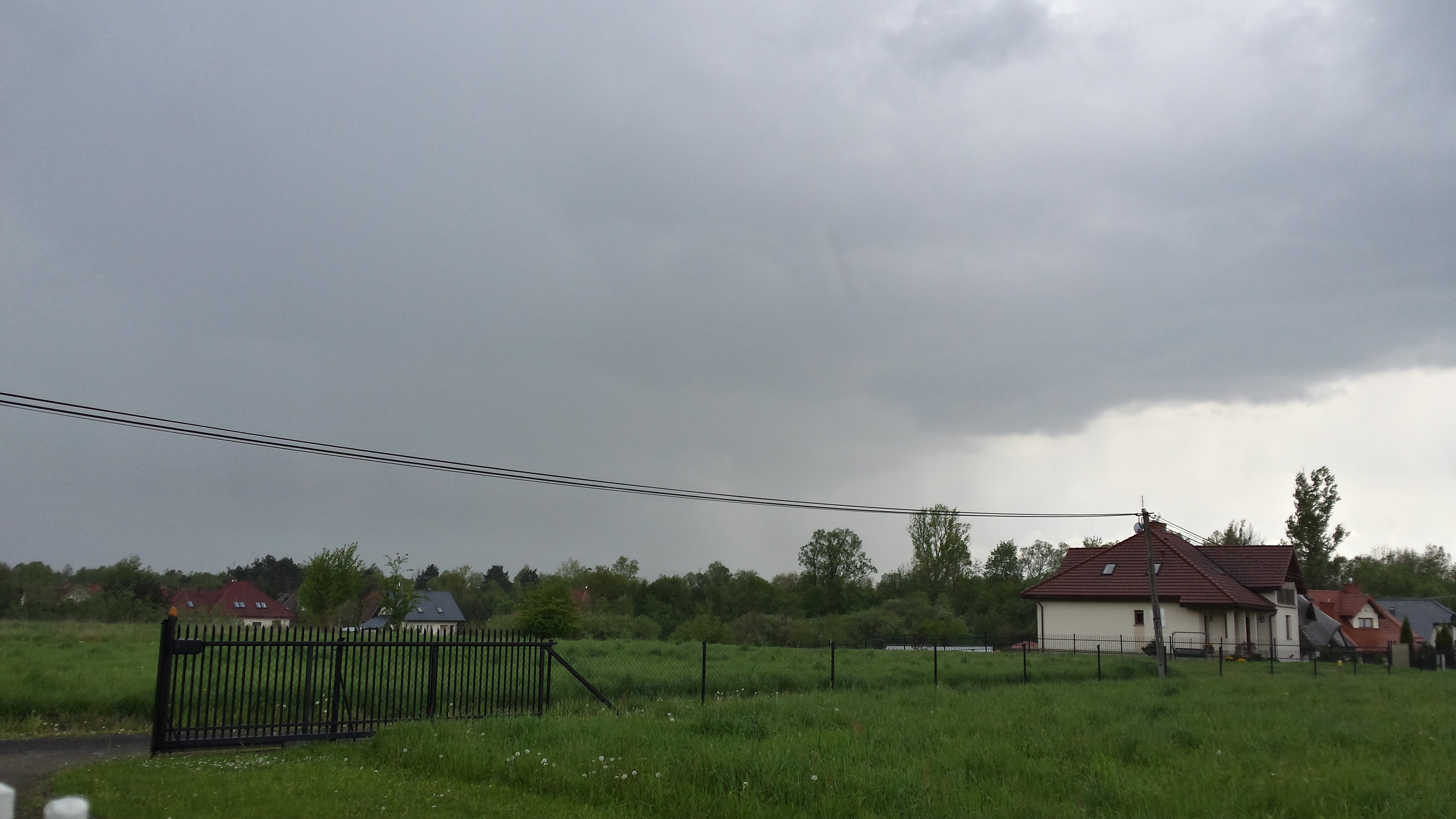 Początek II dekady maja przyniósł lekkie ocieplenie, po czym nadeszło głębokie ochłodzenie, zakończone w dniu wiadomym. To za sprawą tych chłodnych dni, które wtedy nadeszły, do końca II dekady maj był chłodny. Całe szczęście, że nie wystąpił żaden przymrozek, to skreśliłoby ten piękny miesiąc w moich oczach. Chłód nie poszedł jednak na marne, bo trochę przy nim popadało. 17 maja nawet całkiem sporo, ponad 10 mm. Akurat kiedy ta strefa się zbliżała, wracałem pieszo do domu i ledwie zdążyłem. Przy okazji tej ulewy kilka razy zagrzmiało, a tak prezentowała się całość: