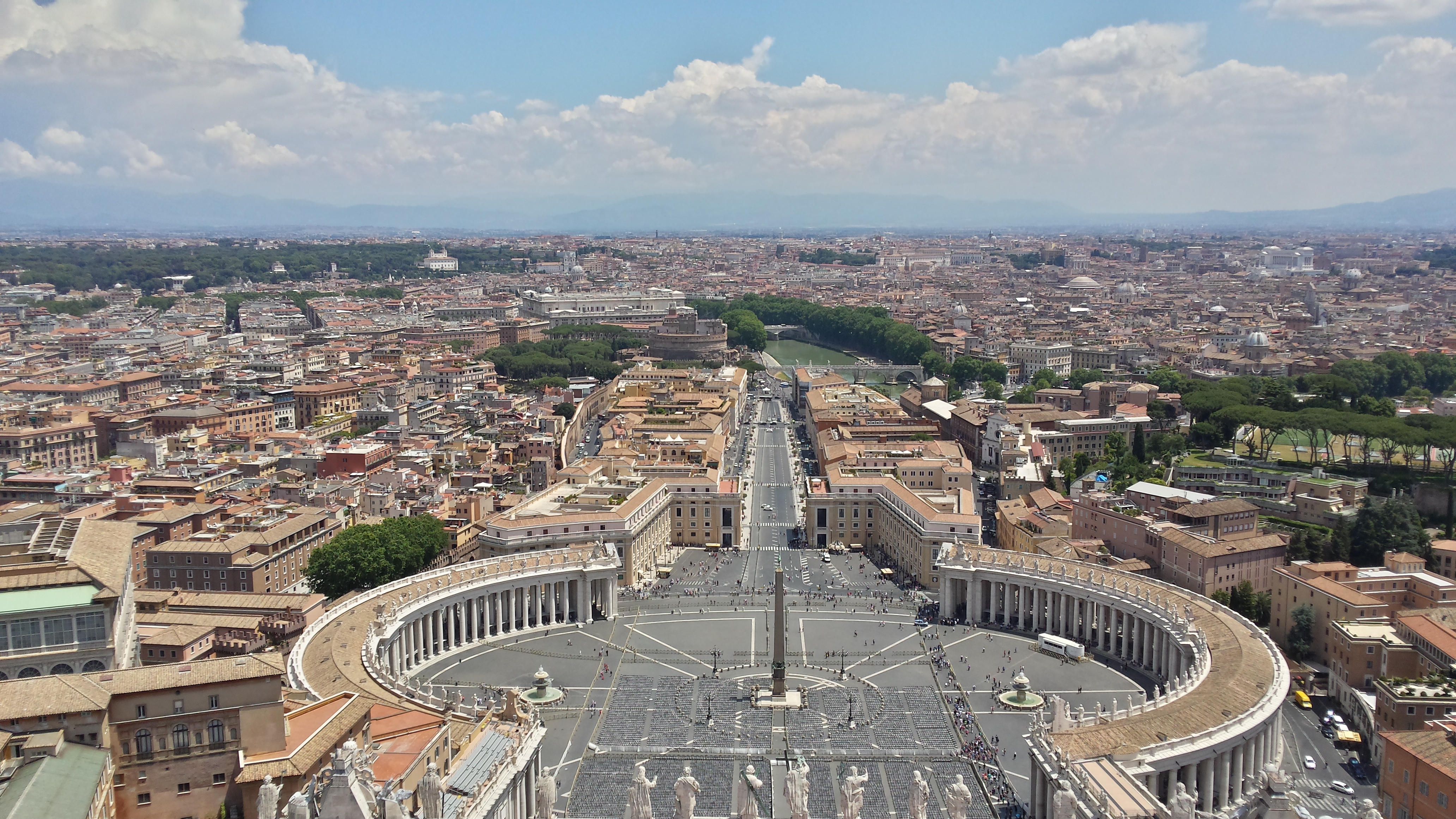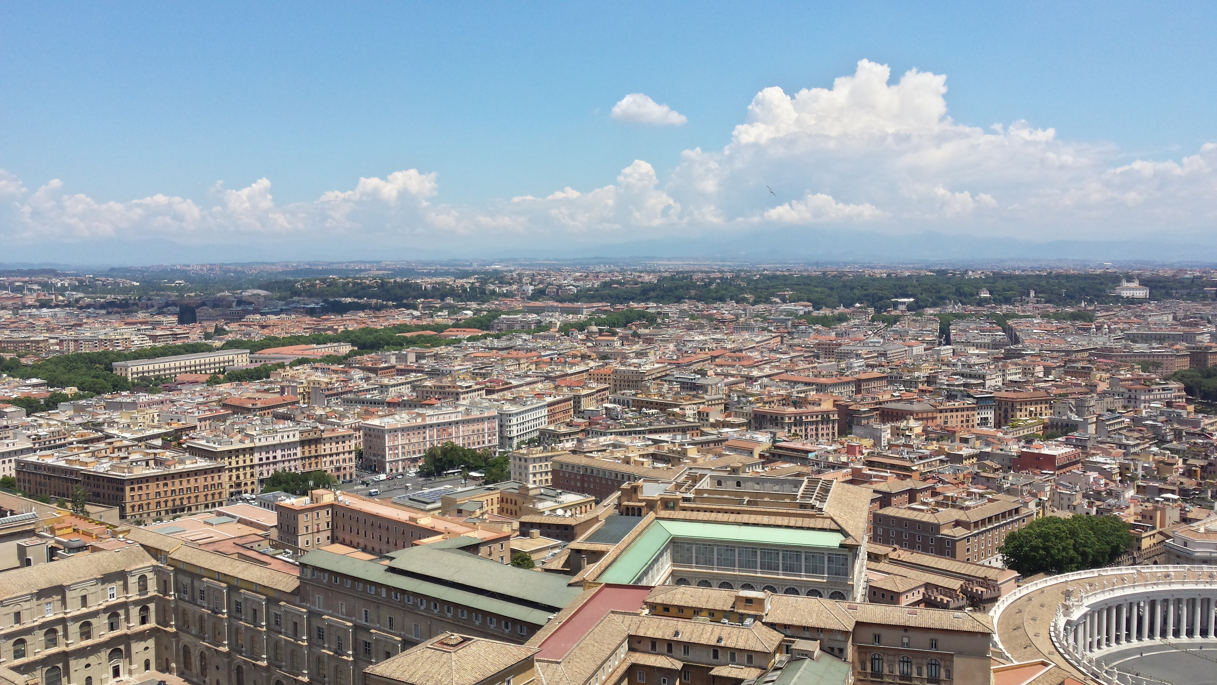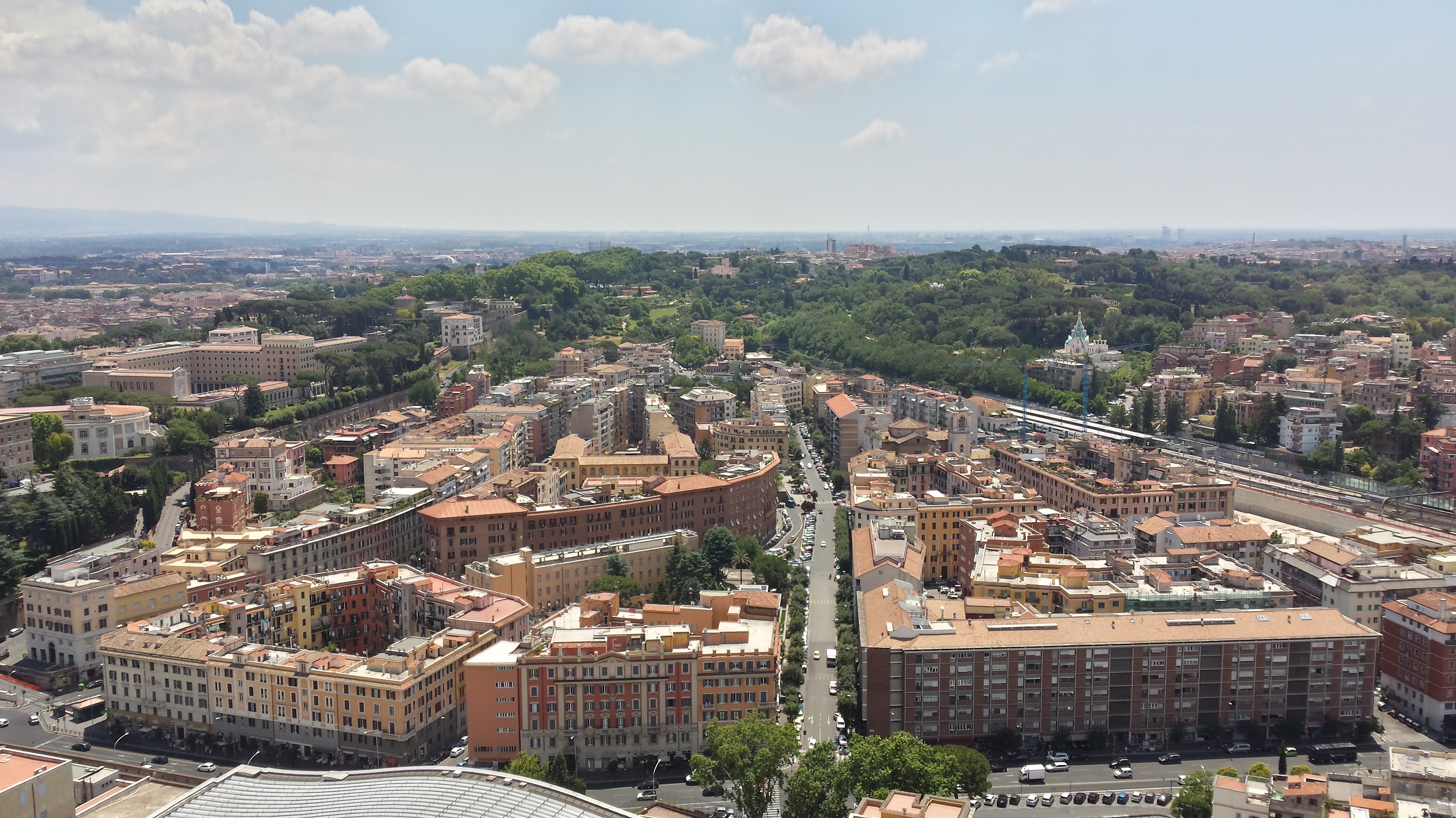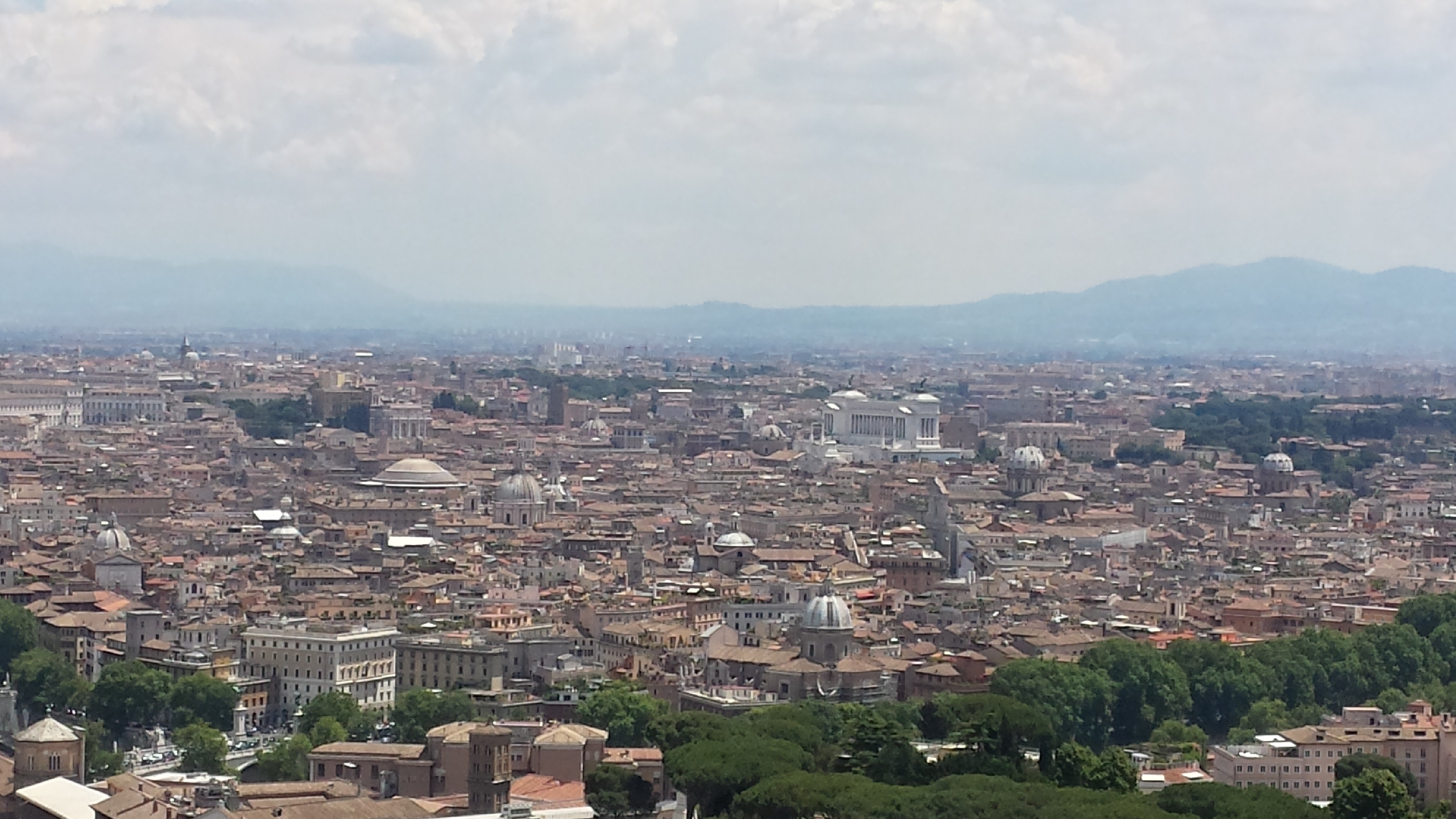 O dziwo nie było tak gorąco jak można się spodziewać po tym regionie. Miejska stacja pod wpływem MWC (czyli realnie oddająca warunki z mojej perspektywy) notowała 29 stopni, podobnie jak następnego dnia. W środę 8 czerwca odczuwalnie było mi goręcej i już lekko nieprzyjemnie (uczestniczyłem wtedy w środowej audiencji generalnej z udziałem Papieża i grzało dotkliwie), ale po południu nad miastem przeszła słaba burza, która to trochę złagodziła. Powietrze było bardzo suche, dzięki czemu wysoka temperatura nie była tak problematyczna, o ile było się w ruchu. Gorzej jak się człowiek zatrzyma ;)