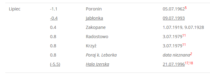 Według portalu https://meteomodel.pl/ , rekordy zimna dla lipca są następujące:
