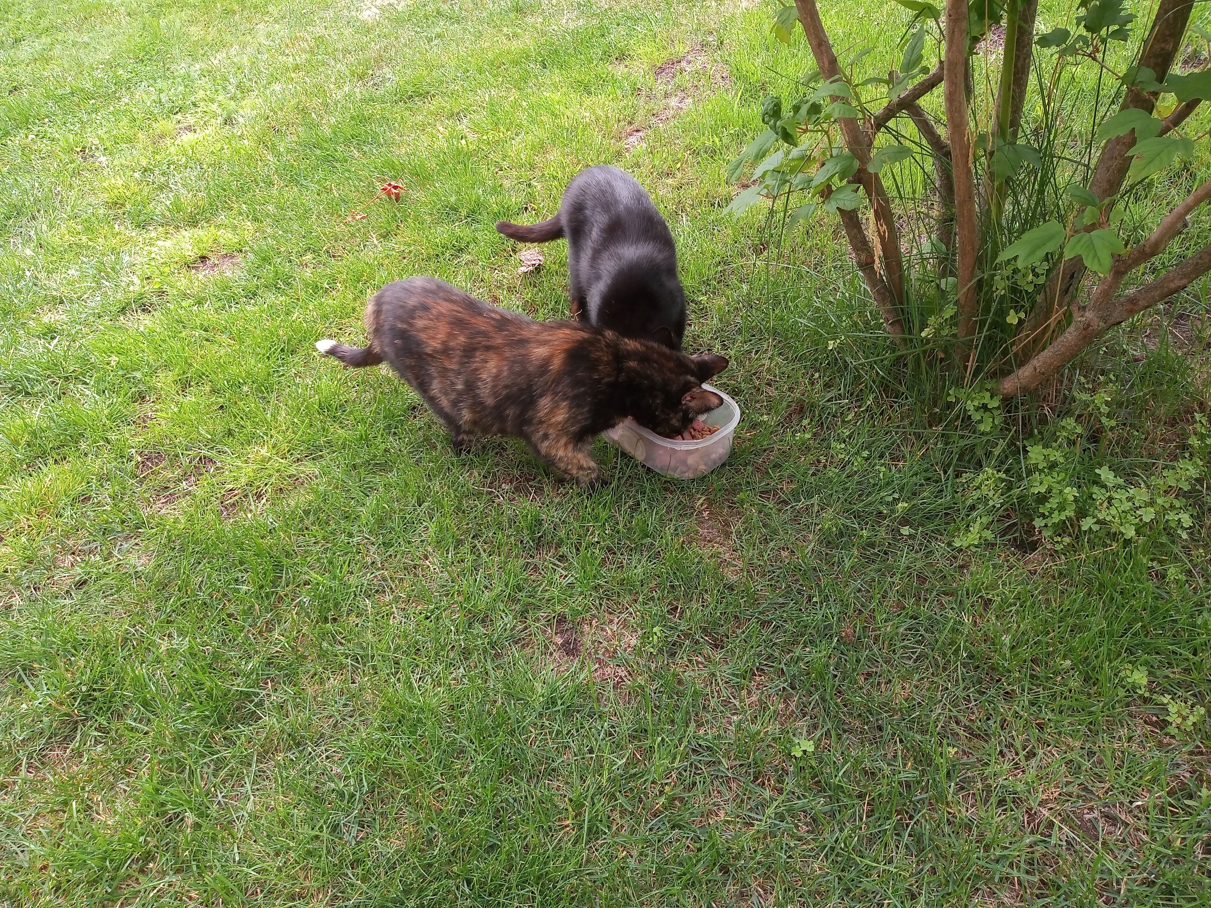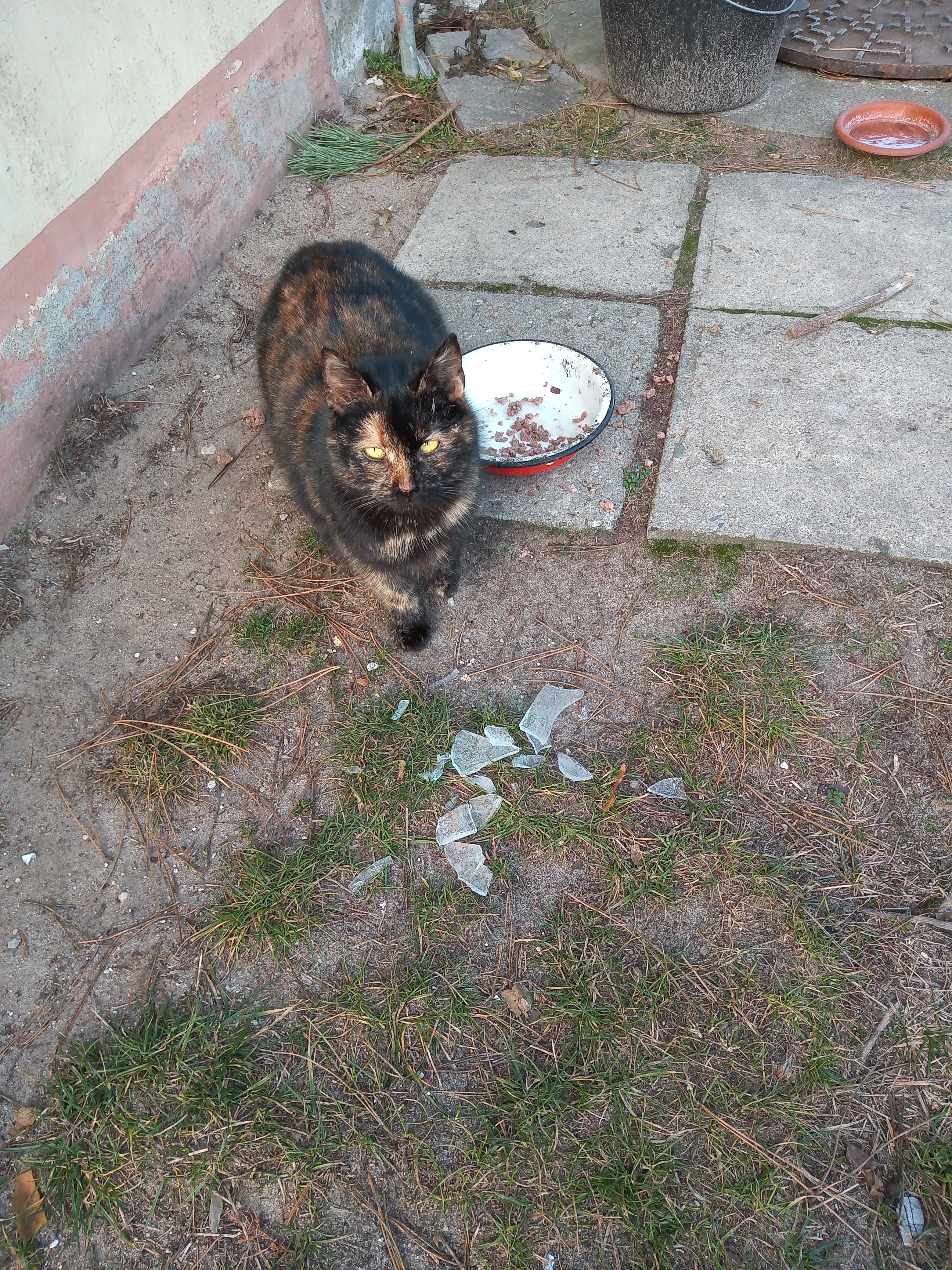 Klakier jakiś czas temu został zabrany do domu przez jednego z działkowców. Z półdzikich "całorocznych" kotów została tylko "mamcia" Czarnulka i jej córka Ciapata.