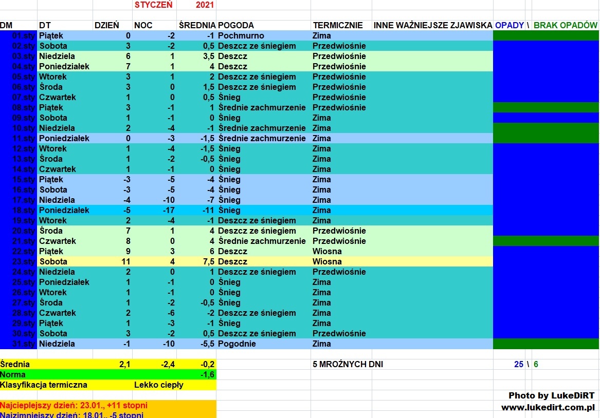 Tak, u mnie styczeń był podobny, tylko ocieplenie 20-24.01. przebiegło u mnie znacznie płyciej (praktycznie wszystkie noce w tym okresie miały ujemny tmin.), ogólnie w całej 3 dekadzie miałem nieco niższe temp. ;-) Opadowo zapisał się jako ponadprzeciętny: spadło ponad 40 mm wody. ;-) Miesiąc był pochmurny: chmury towarzyszyły nam przez ok. 80-85% czasu. ;-) Póki co u mnie suma pokrywy za sezon wynosi 247 cm (więc może to nic szczególnego, ale na tle ostatnich 8 l. naprawdę całkiem dużo). ;-)