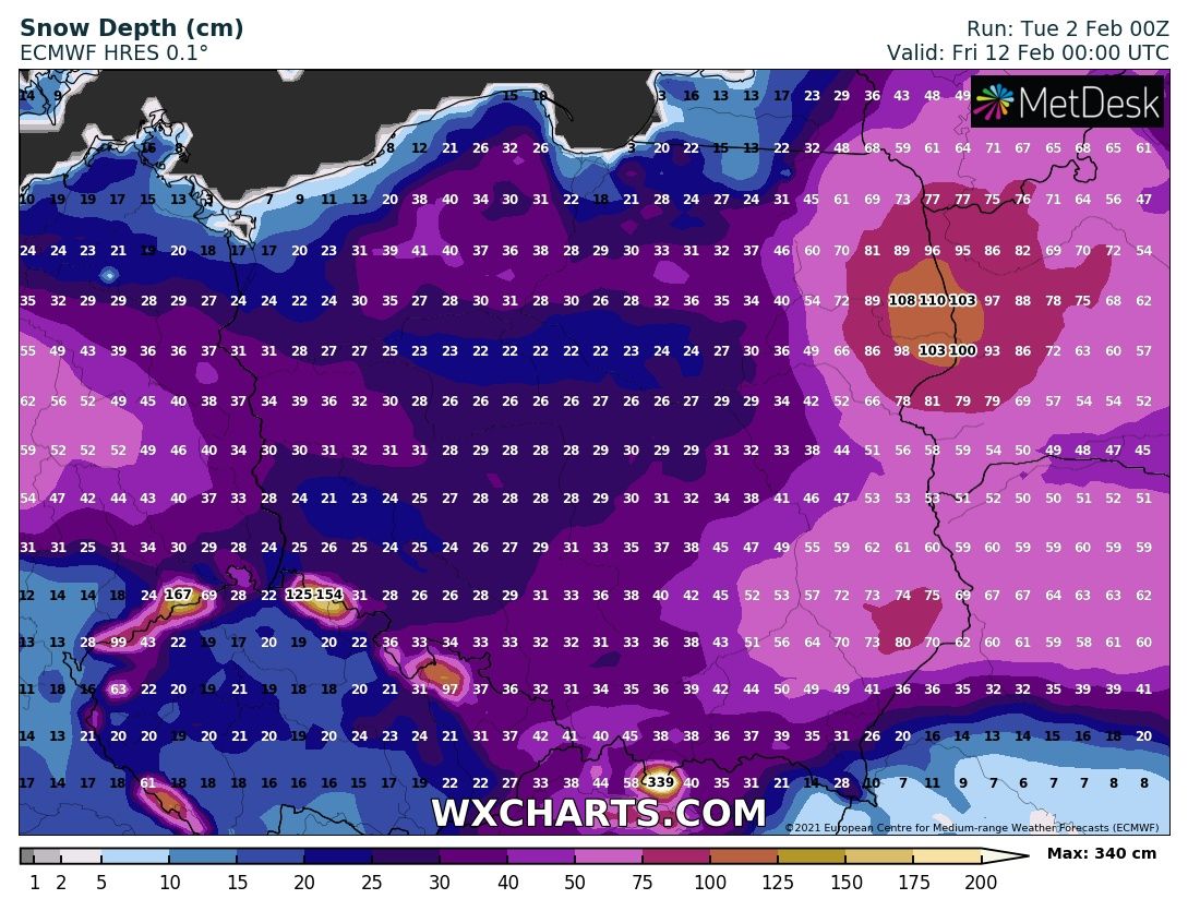 Akurat pod względem prognozy wysokości pokrywy śnieżnej to najgorszy model, bo zawsze bardzo zawyża, ale pod względem temperatur jest lepszy od GFSa