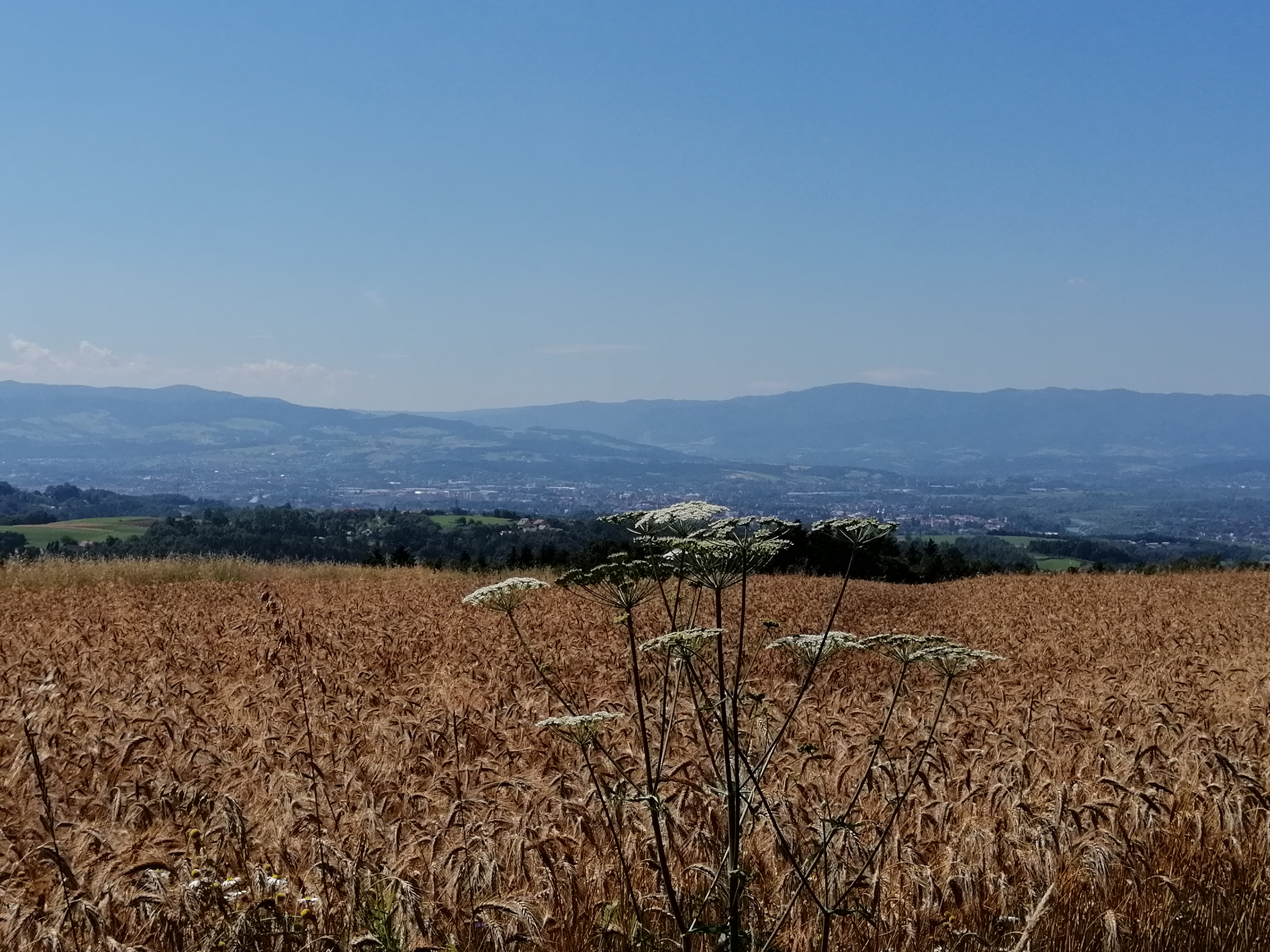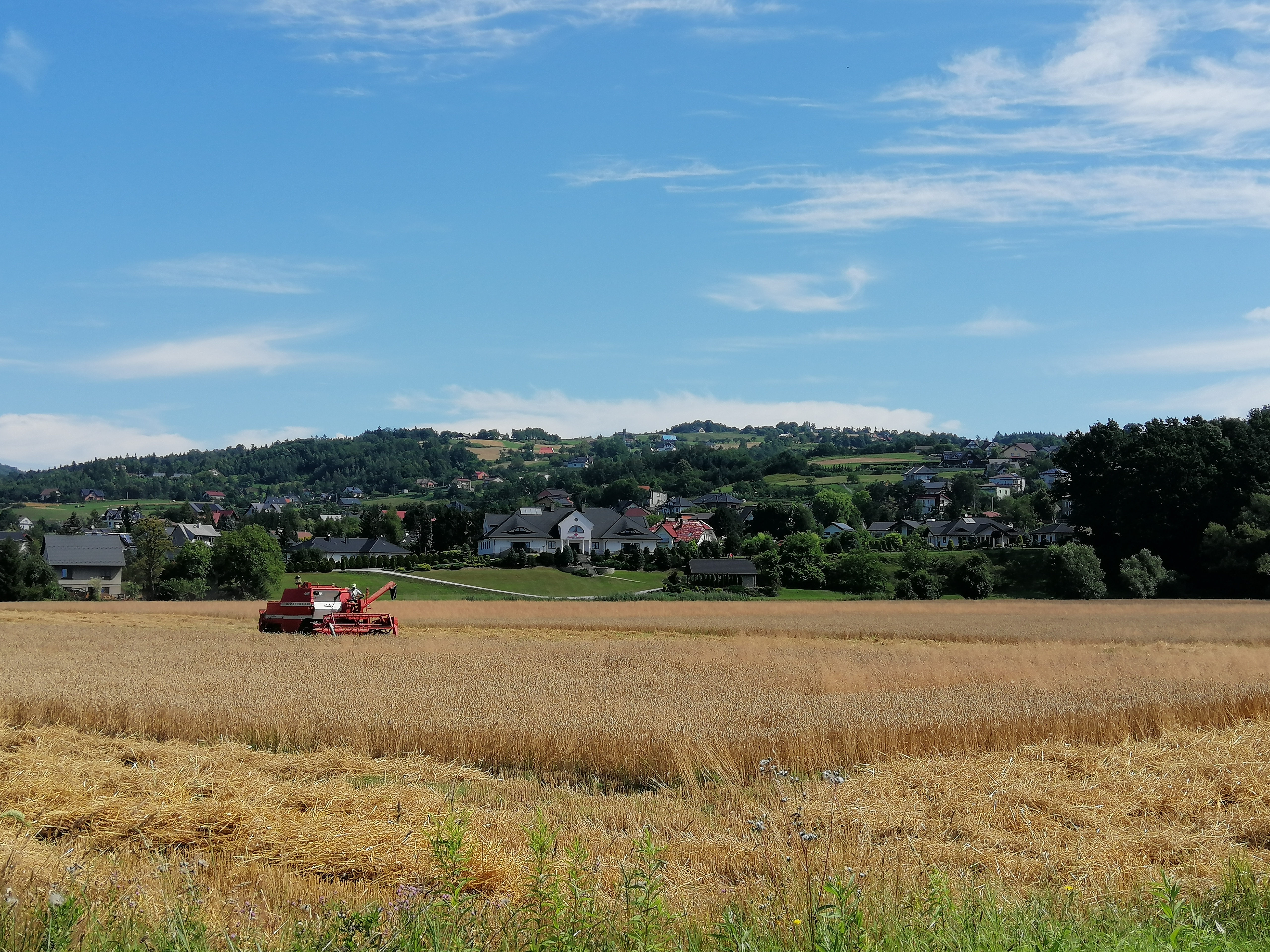 Witam W pierwszym dniu pełnych, nieskrępowanych wakacji, postanowiłem wybrać się rano na przejażdżkę. Mimo wysokiej temperatury i trudnego terenu, udało mi się podołać wezwaniu i przejechać całą, 25-kilometrową podgórską pętlę. Dzisiejszy wyjazd sprzyjał również odświeżeniu wspomnień, bowiem w tym miejscu nie było mnie od pięciu lat. To jest ta trasa, której na początku sierpnia 2015 nie byłem jeszcze w stanie pokonać, bo zwyczajnie się wykończyłem, a ponadto straszyła mnie pseudoburza Teraz już się udało, a oto zdjęcia które wykonałem:
