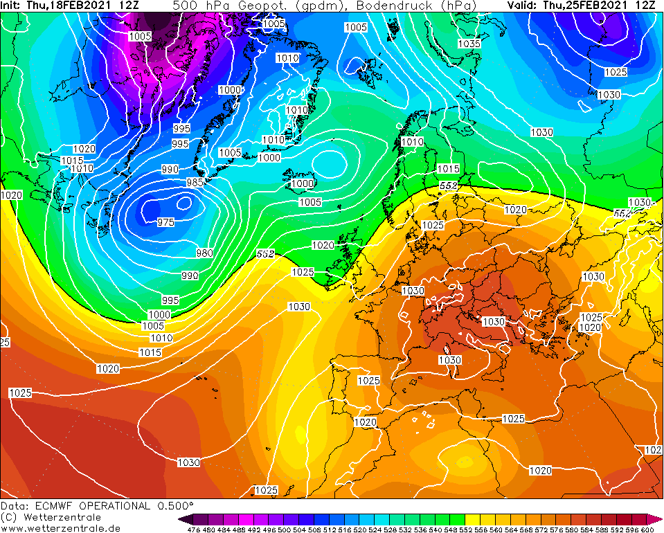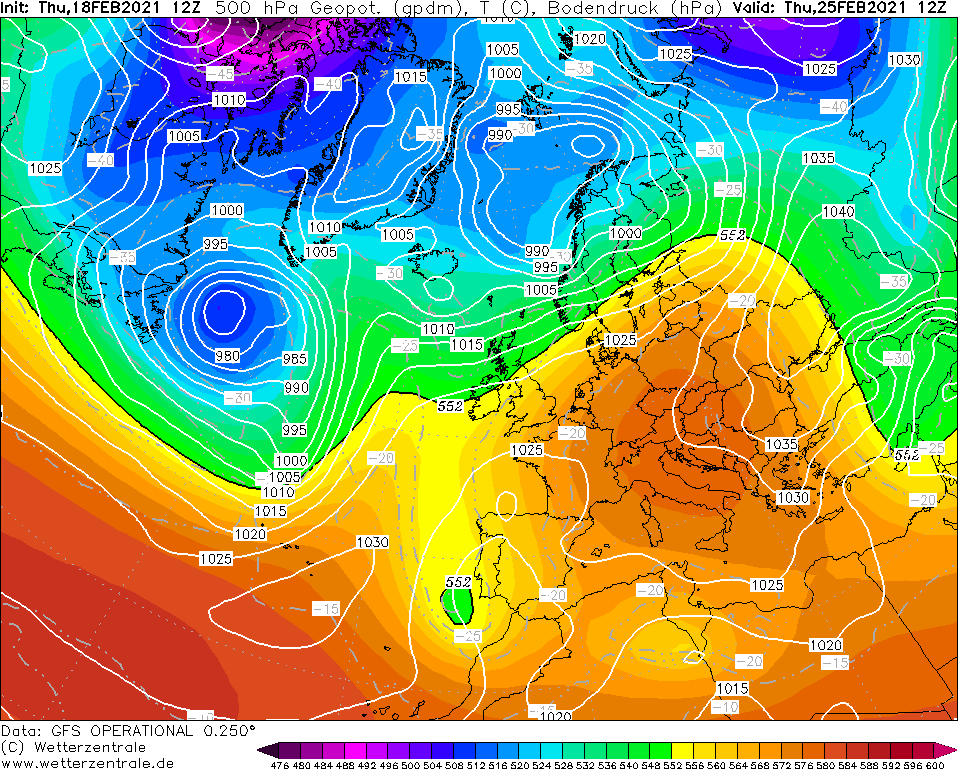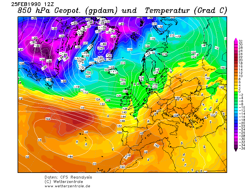 Co do sytuacji barycznych, to dostrzegam taką różnicę (tak jak pewnie i Wy, trochę też dane pomogły), że w 2008 coś niże trochę walczyły. Ocieplenie mimo że okazało się u mnie amplitudowe jak tamto sprzed 18 l., to jednak więcej chmur gościło na niebie i w sumie mnie to tak nie dziwi, że kilkaset km na N mogło nawet padać. Zresztą u mnie po 3 dniach pogodnych (ale nie jakichś wybitnie lampowych) i z bardzo wysokim tmaks. jakiś deszcz o sobie przypomniał. Nawet jakby z wersji przedstawionych układów barycznych sprawdziła się ta dawniejsza, czyli 1990 (pewnie się mylę, ale poniżej załączone prognozy raczej wskazują na większe prawdopodobieństwo nowszej, tj. tej z 2008), to ten luty pewnie i tak nie pobije rekordu usłonecznienia. Jedno jest pewne, że do końca lutego czekają nas ciepłe, jeśli nawet nie bardzo ciepłe dni i że pogodnego nieba możemy ujrzeć całkiem sporo, ale o błękit absolutny (zupełny brak chmur) może być ciężko, a kto wie czy też jakieś słabe opady przelotne się nie pojawią.