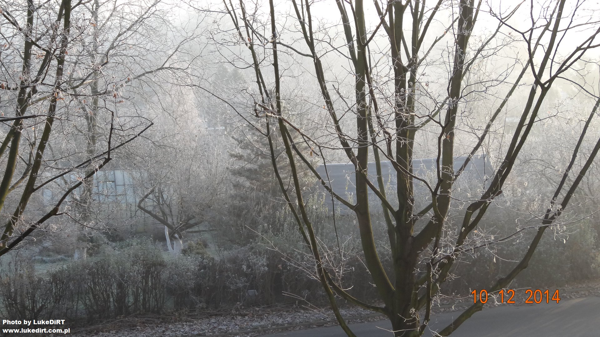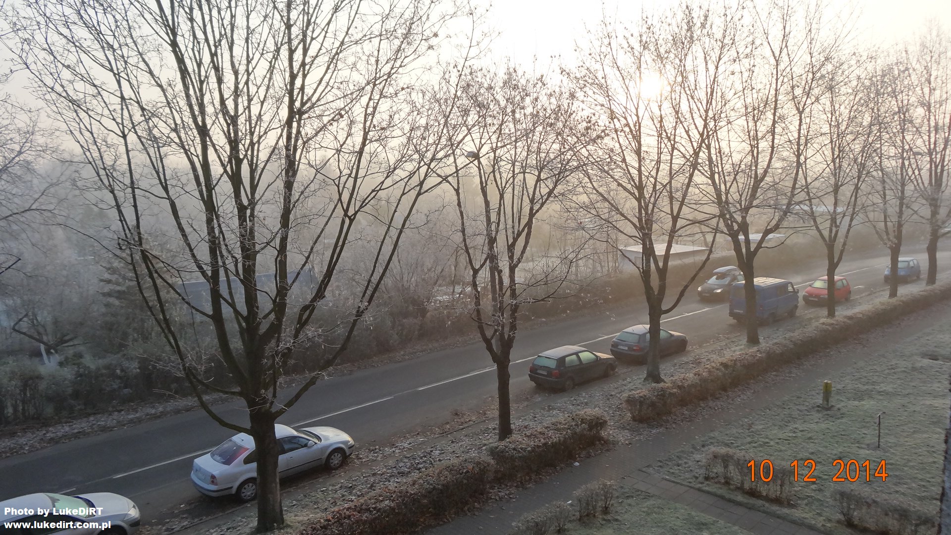 Oto jak wygląda typowy poranek po mroźnej, pogodnej nocy. Nie było wtedy śniegu, ale szronu i szadzi było naprawdę sporo. Zdjęcia zrobiłem 10 grudnia 2014 roku.