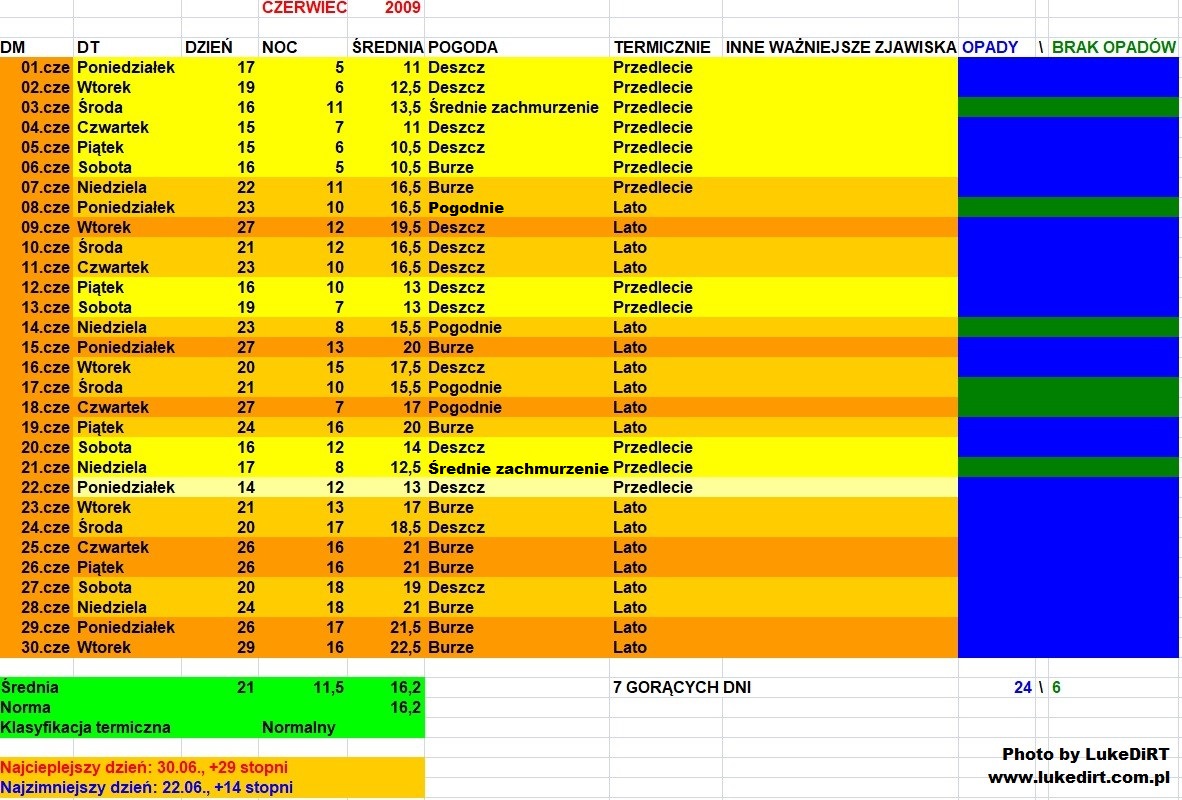 To prawda, w ostatni tydzień czerwca to noce były wręcz nieznośne, bo w 1 i 2 dekadzie na ogół przeważały chłodniejsze opcje. Ogólnie mam bardzo mieszane odczucia co do 3 dekady. Bardzo dużo padało, ale też często grzmiało. Wcześniej było nawet, nawet..., pomijając fakt, że ładną (tzn. słoneczną) pogodę rzadko kiedy można było dostrzec.