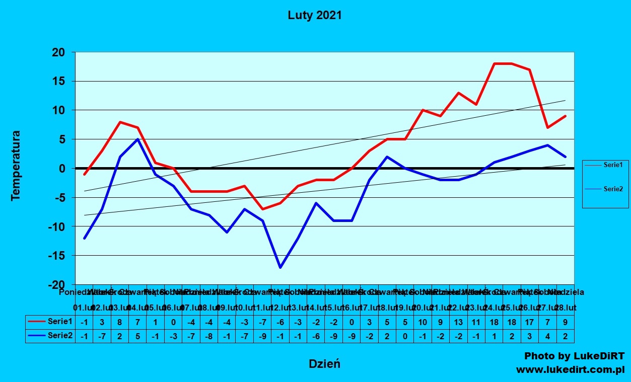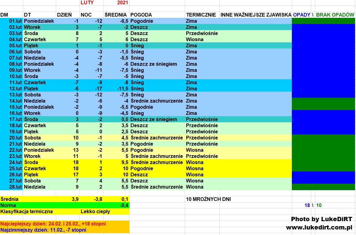 Łukasz no to u Ciebie był dużo cieplejszy niż u mnie a wydawało mi się ,że odwrotnie choć minimalna w lutym u mnie tylko -15,3*C. Także u Ciebie więcej dni z całodobowym mrozem bo 20 dni u mnie tylko 17 dni.