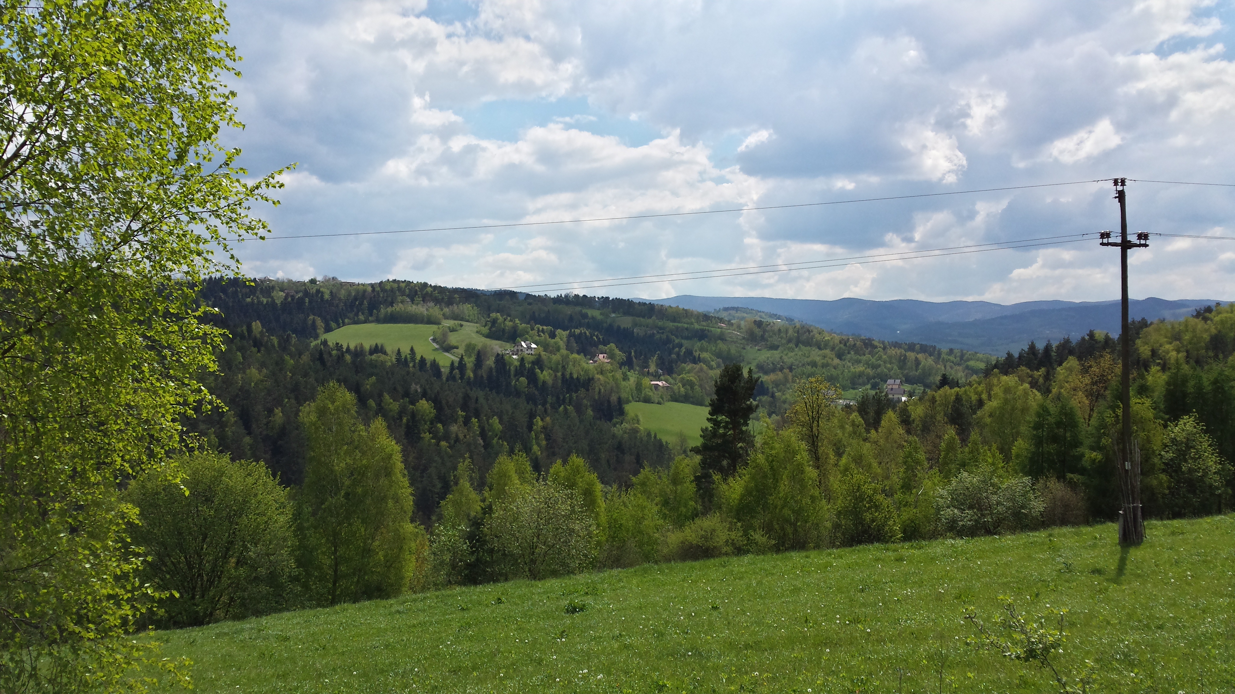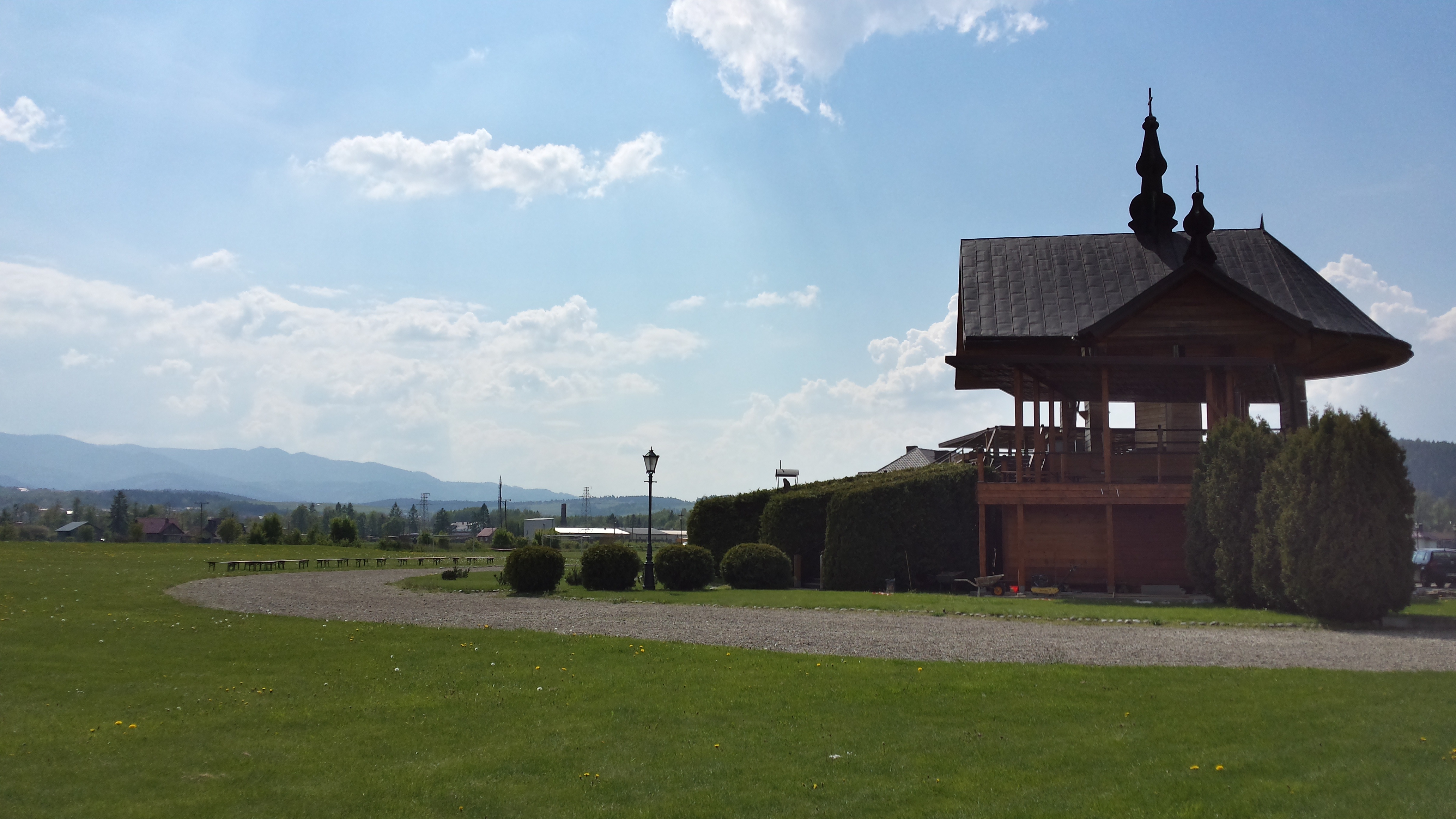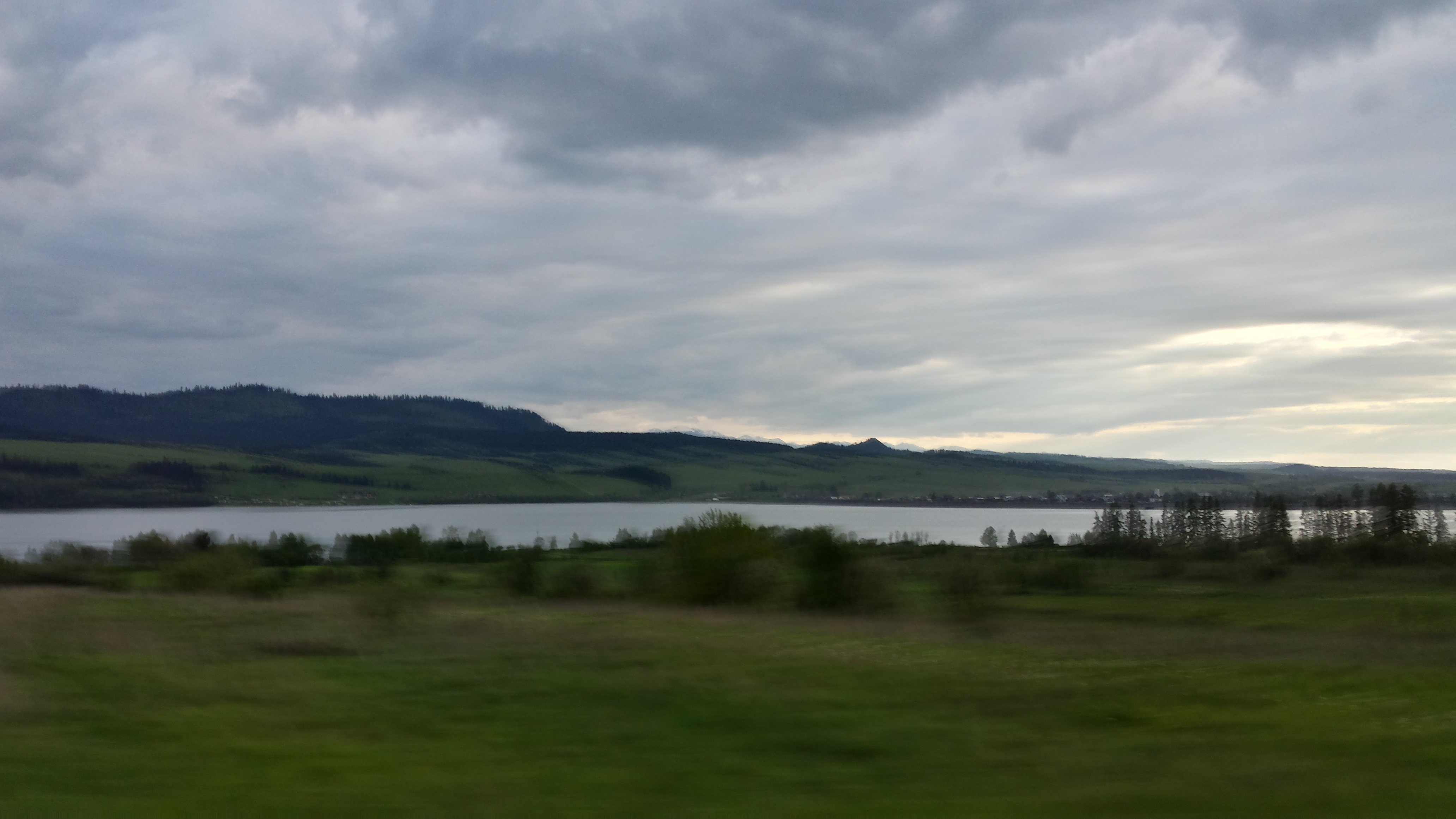 Początek dotkliwego ochłodzenia. Droga z Zakopanego, gdzie byłem na chrzcinach córki kuzyna. To 15 maja 2016. Na pierwszym zdjęciu jest Zbiornik Czorsztyński, zaś na drugim pałac w Kamienicy. Zimno było
