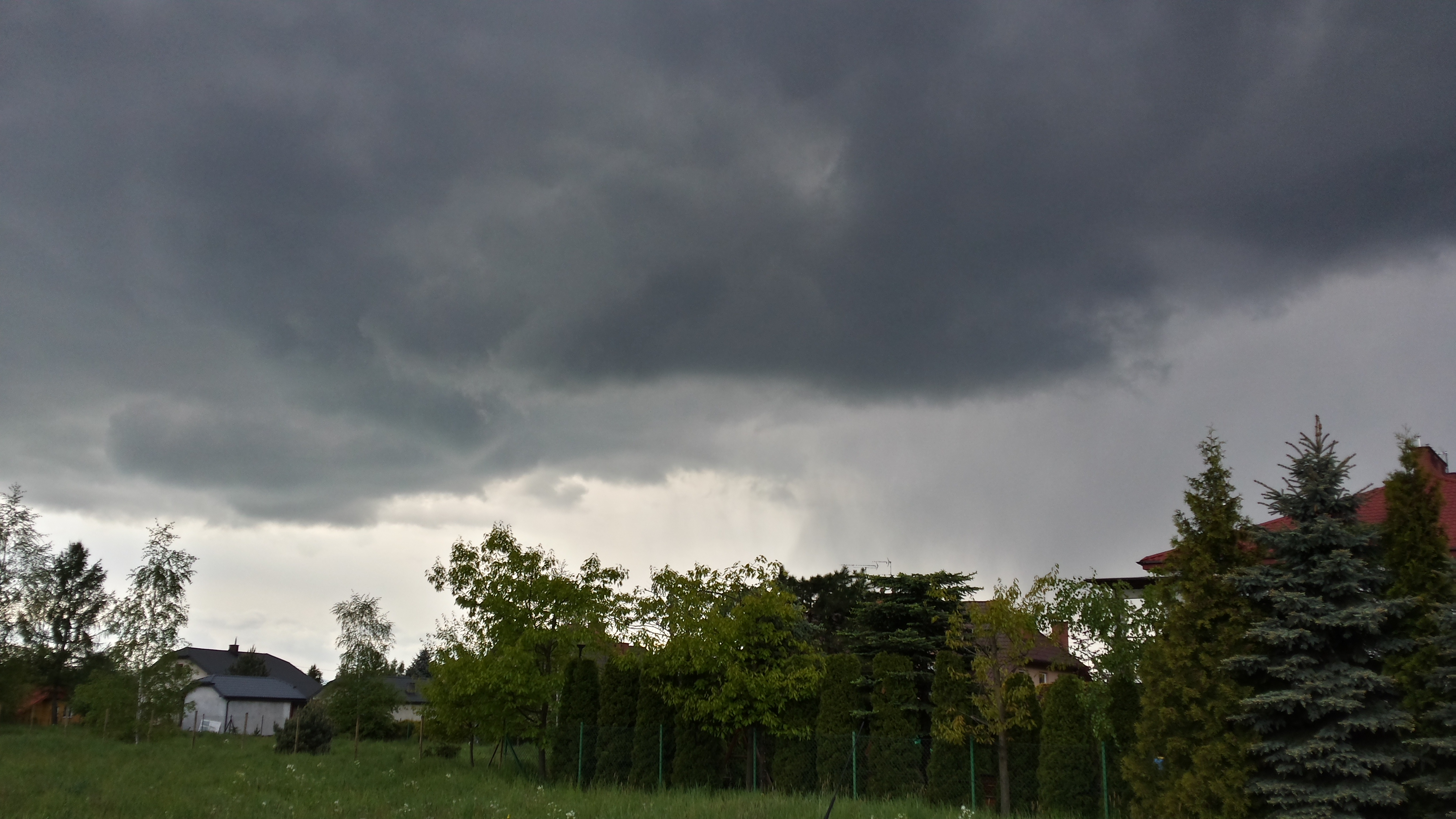 10 maja 2016, wieczorny cumulonimbus na północ ode mnie widziany z około 30 km. Wcześniej trochę pogrzmiało i kropiło.