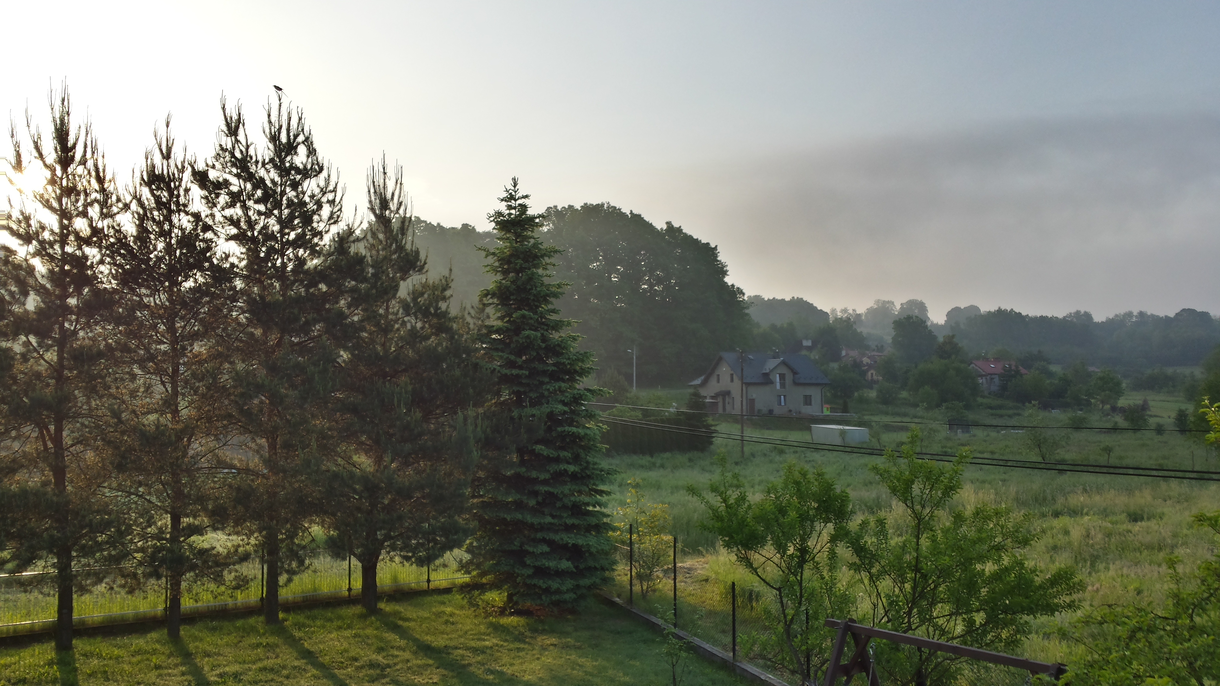 I wschód Słońca w mglisty poranek 31 maja 2016. Tego dnia rano pojechałem na wycieczkę do Nowego Wiśnicza i Łańcuta, ale gdzieś pogubiłem zdjęcia stamtąd. Na początku wszędzie było słonecznie, ale po południu w Łańcucie straszyły trochę chmury i lekki deszcz. Nad Nowym Sączem przeszła tego dnia druga z rzędu konkretna burza, aż szkoda że mnie ominęła.