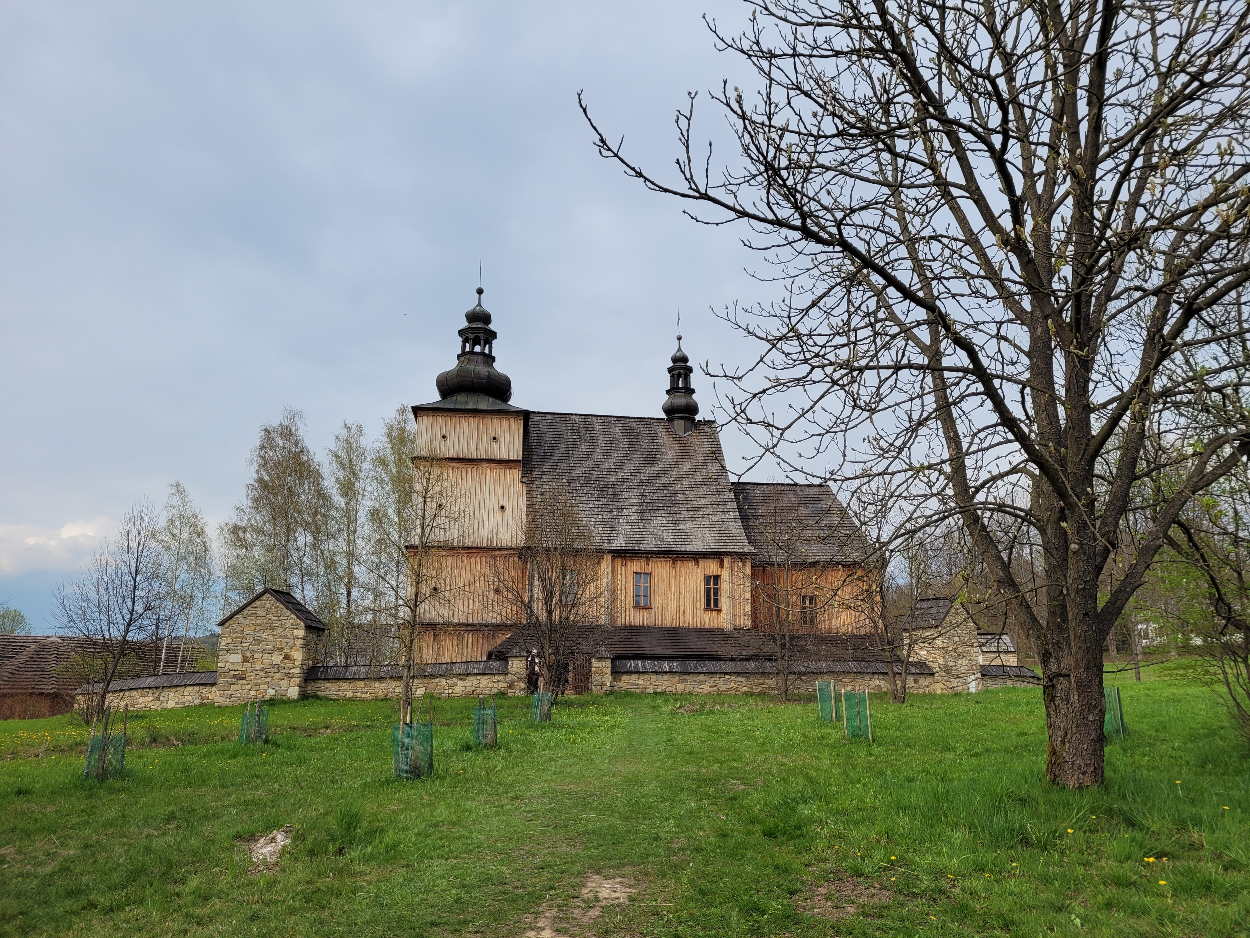 Tutaj dominują jednak późno ulistniające się drzewa, jest wiele dębów. Większość drzew w okolicy wygląda inaczej i posiada małe listki, a klony i kasztanowce już dosyć duże. Szkoda że nie byłem w tym skansenie 1 maja 2018 roku, wtedy wszystkie drzewa miały już pełne ulistnienie i w większości to nawet nie był już "młody maj".