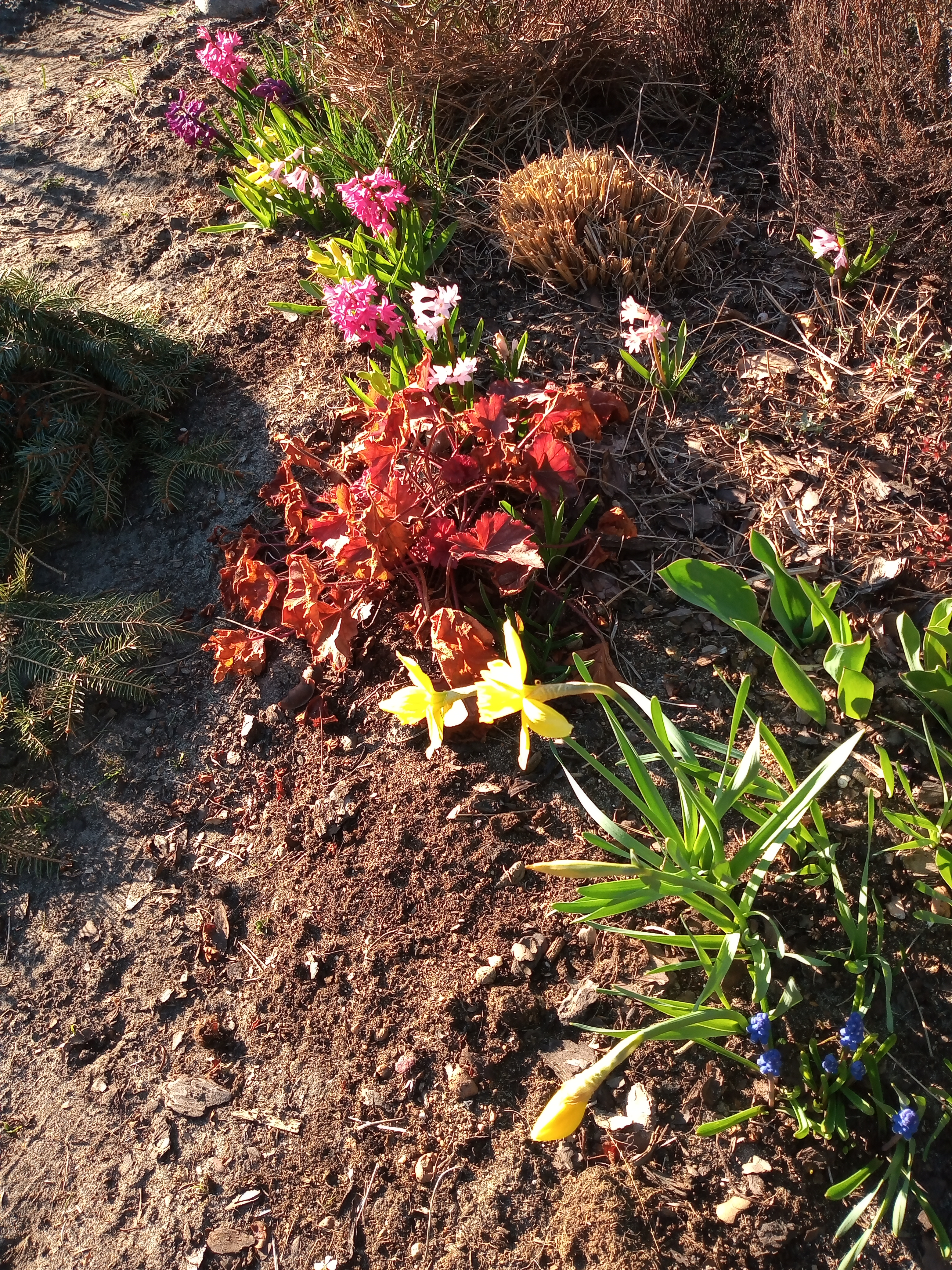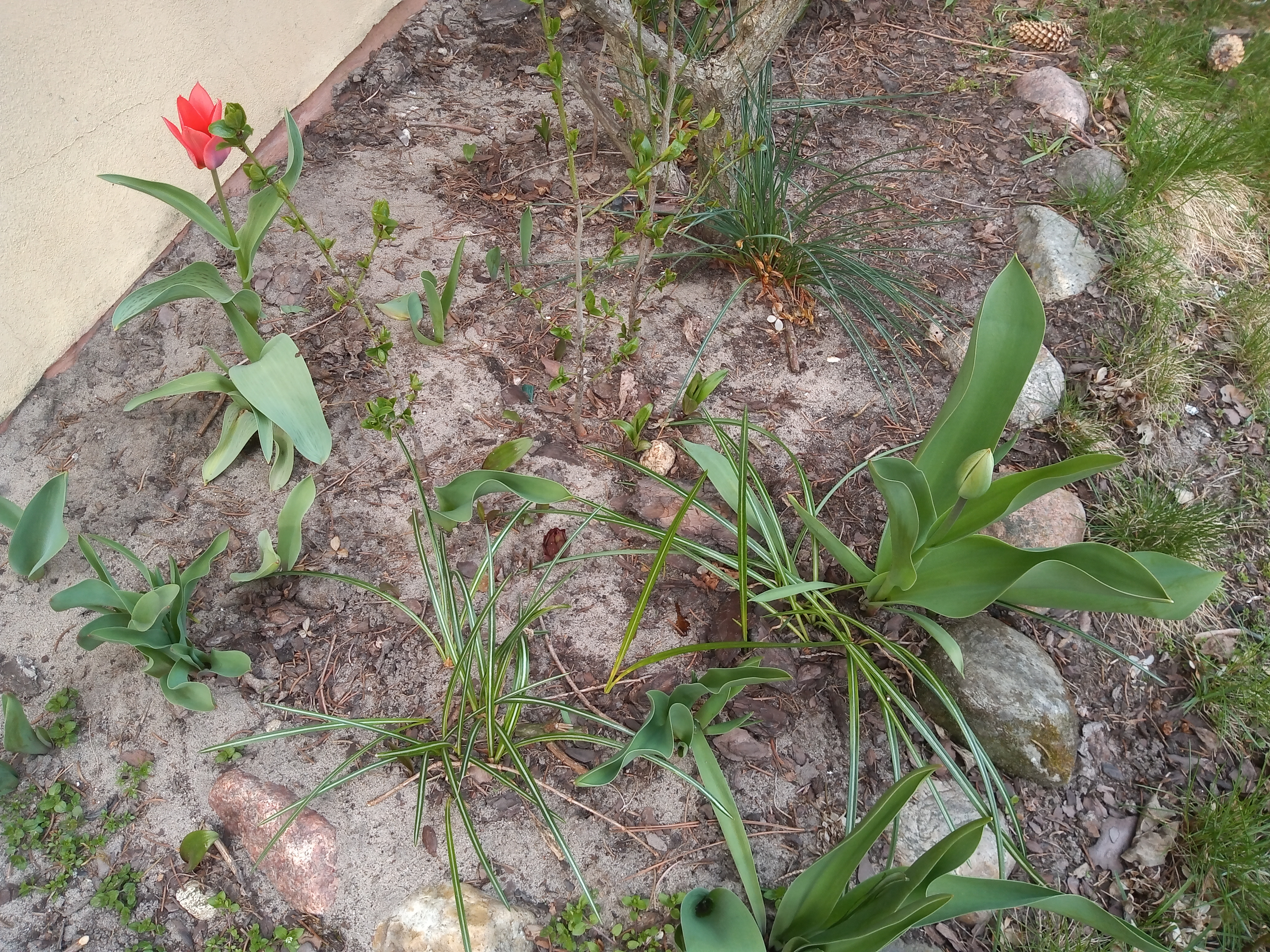 Mimo przymrozków kwiatki "nie dały się", zakwitł nawet pierwszy tulipan.