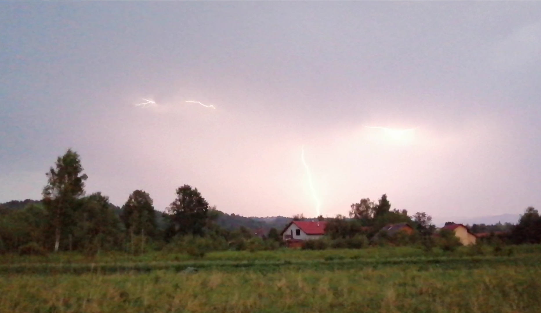 Burza przesuwała się lekko na południe ode mnie, jednak w jednym momencie poczułem jej bliskość. Szkoda, że nie uchwyciłem kilku pięknych wyładowań doziemnych, które trafiły jakieś 3 kilometry na południowy-wschód ode mnie. Akurat kierowałem obiektyw gdzie indziej. Błyskawice pojawiały się po różnych stronach, udało mi się utrwalić te: