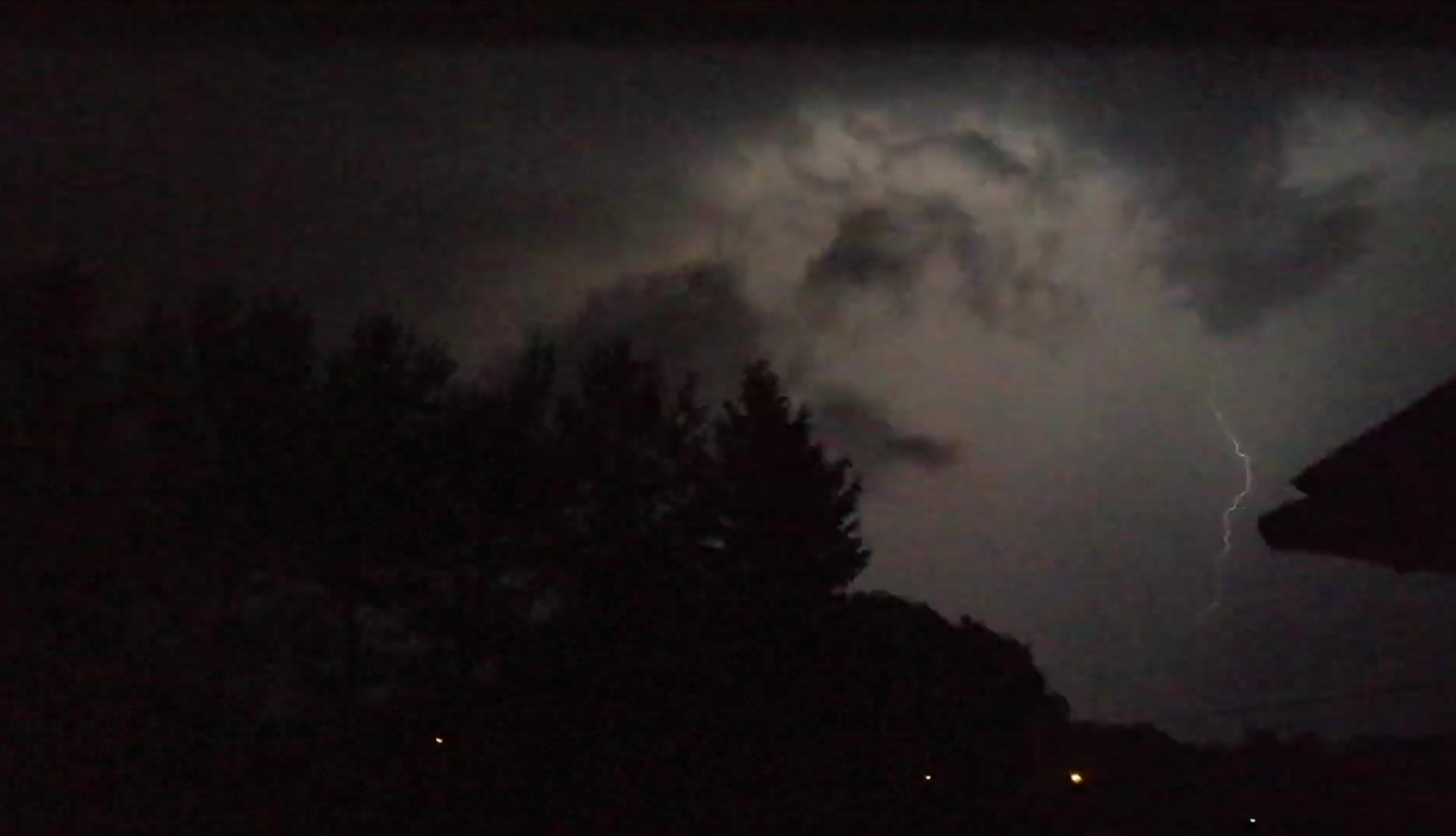 Nocą nietrudno o wrażenie wzmocnienia burzy, bowiem w ciemności wiele bodźców odbiera się jako silniejsze. Grzmiało mocno i całość zjawiska bardzo sprawnie przekraczała góry. Większość wyładowań ginęła w odmętach chmur i smug opadowych, ale zdarzały się także te piękne, kształtne pioruny. O 3:00 było jednak jeszcze daleko.