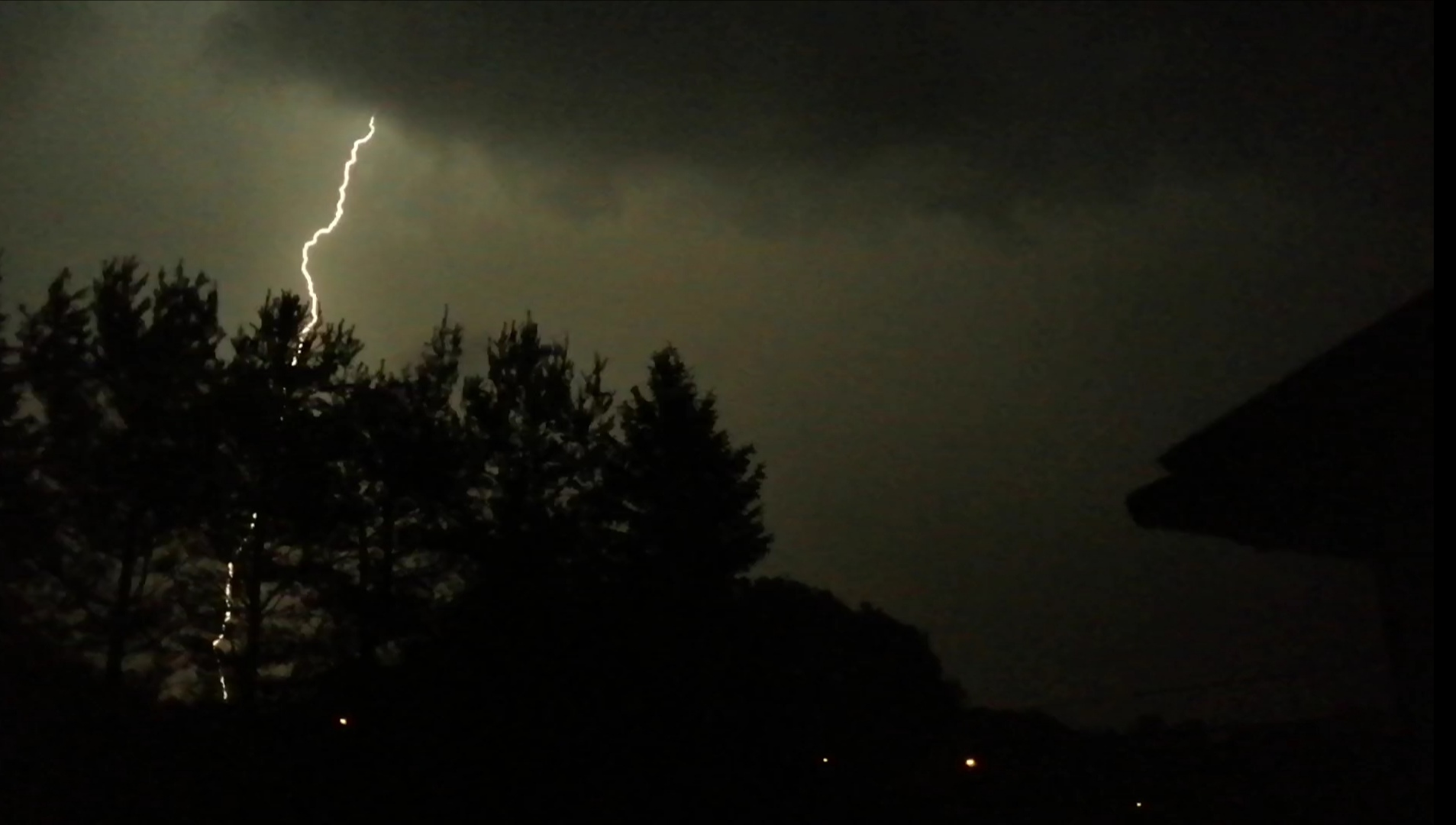 Jakoś około 23:20 światła w całym domu zgasły. Nie było już prądu, pozostało tylko zabójcze, naturalne światło. Podszedłem jeszcze na chwilę do okna w salonie. Mama też tu poszła, ale tak wystraszyła się bliskiego wyładowania, że doradziłem, by poszła gdzie indziej i na to nie patrzyła.