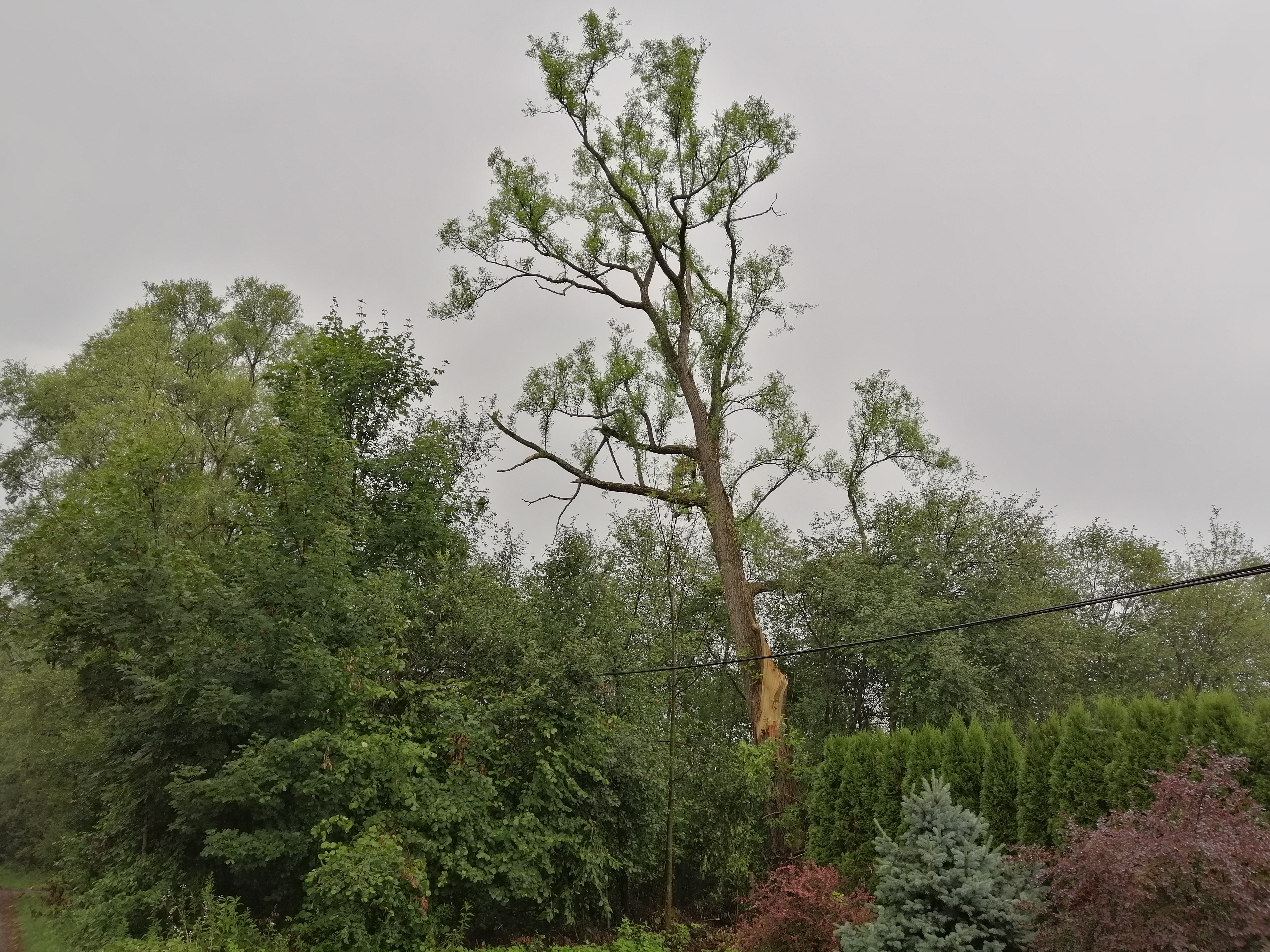 Okolica musiała zmierzyć się z wieloma skutkami tej burzy. Łubinka podtopiła wiele domów, nasz przydomowy rów prawie wystąpił z brzegów, a ruch w mieście został sparaliżowany. Ale przeszliśmy przez to. Tajemniczy bardzo bliski piorun prawdopodobnie obrał sobie na cel drzewo przy drugiej z naszych ulic. Idąc tamtędy w sobotę zauważyłem ewidentny ślad po uderzeniu jakieś 100 metrów od nas.
