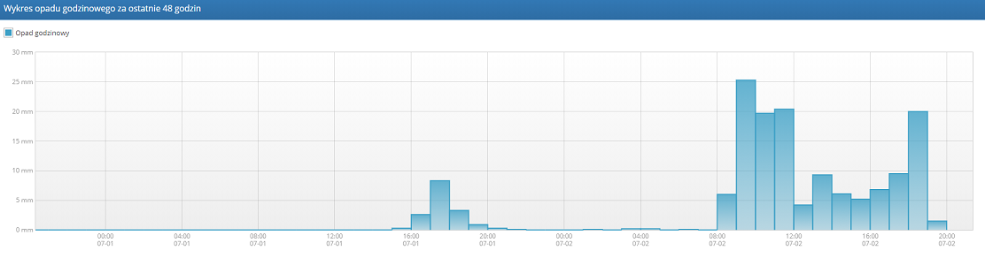 Piorunujących sum ciąg dalszy... W dniu dzisiejszym na zachodzie Podlasia, w okolicy Tykocina zdążyło spaść już 134mm deszczu, w związku ze stacjonarną strefą dość silnych opadów, momentami nawalnych. Dane ze stacji Zawady (253220220) https://hydro.imgw.pl/#station/meteo/253220220