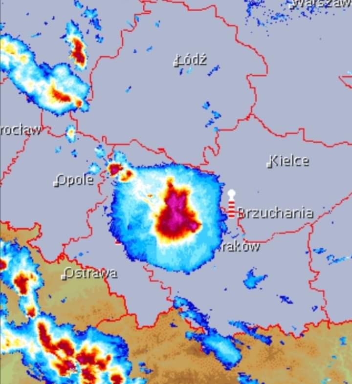 Pragnę poświęcić ten wątek przemieszczającym się przez nasz kraj potężnym burzom, które po raz kolejny w tym roku mogą przyczynić się do wielu zniszczeń. Pierwsza i zapewne najsilniejsza z nich powstała około 1,5 godziny temu na południe od Górnośląskiego Okręgu Przemysłowego i aktualnie przemeiszcza się nad Jurą Krakowsko-Częstochowską w stronę Piotrkowa Trybunalskiego i Łodzi. Na dalszej trasie nawałnicy może znaleźć się Płock i Włocławek, gdzie mieszkają nasi forumowi przyjaciele - uważajcie na siebie. Mogą wystąpić opady dużego gradu i zejście trąby powietrznej, jest bardzo duża odbicowość. To wygląda mi na jeden z najsilniejszych incydentów burzowych wielu ostatnich lat.