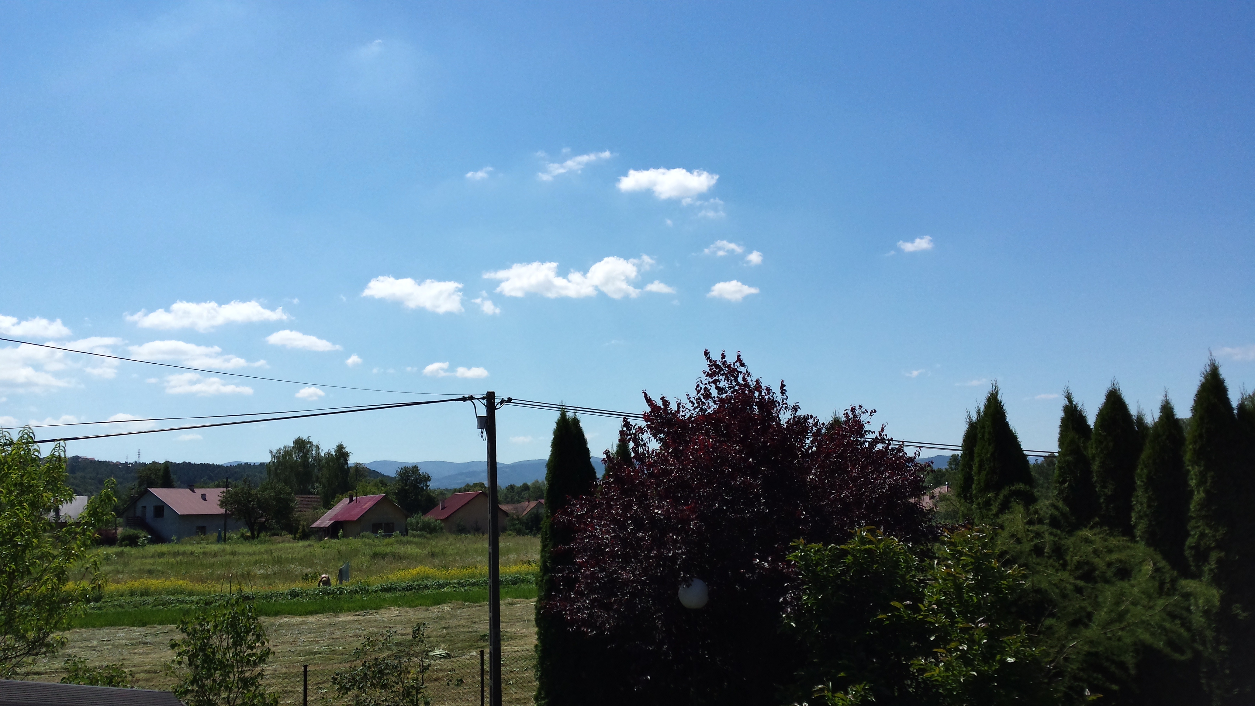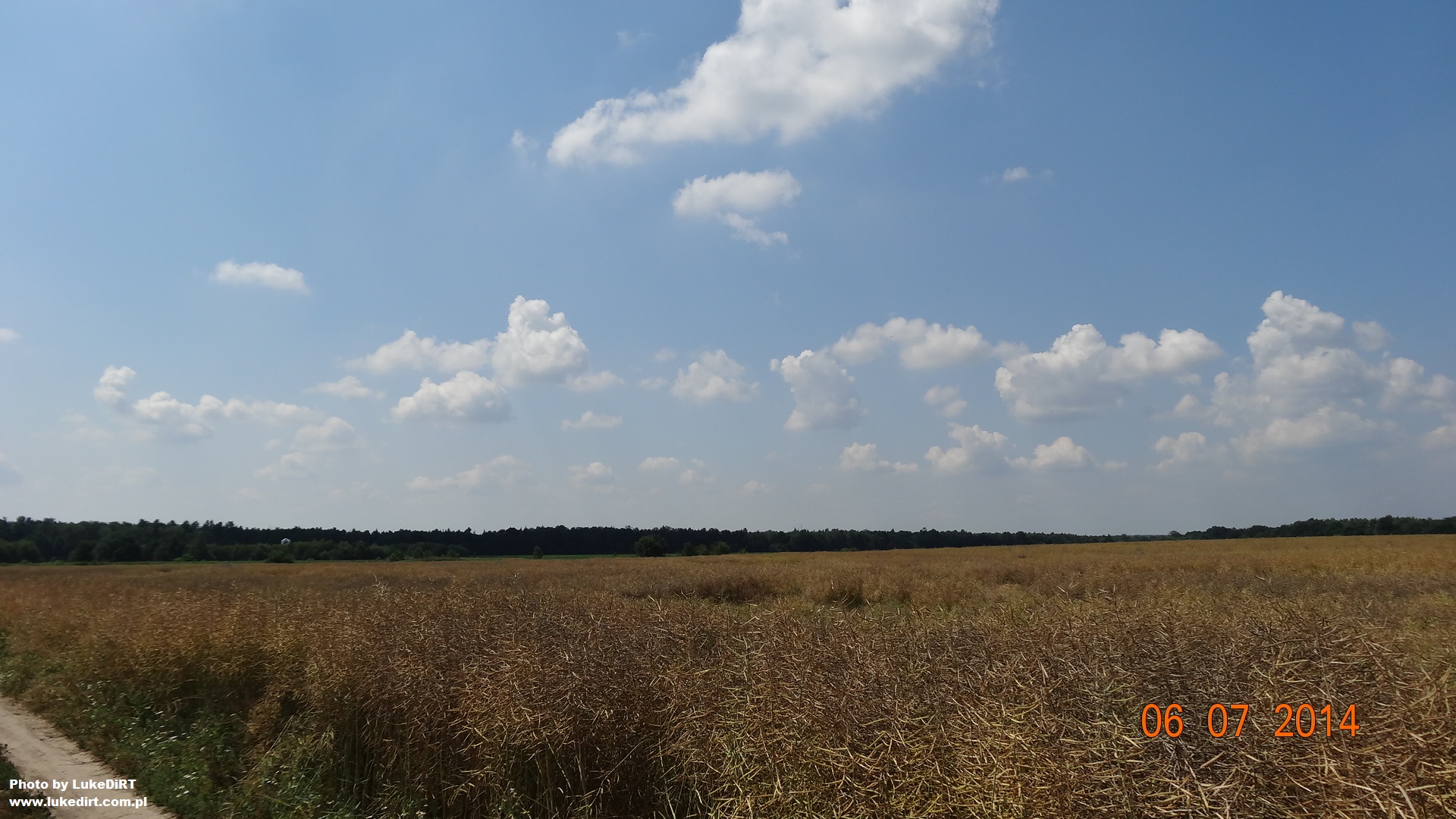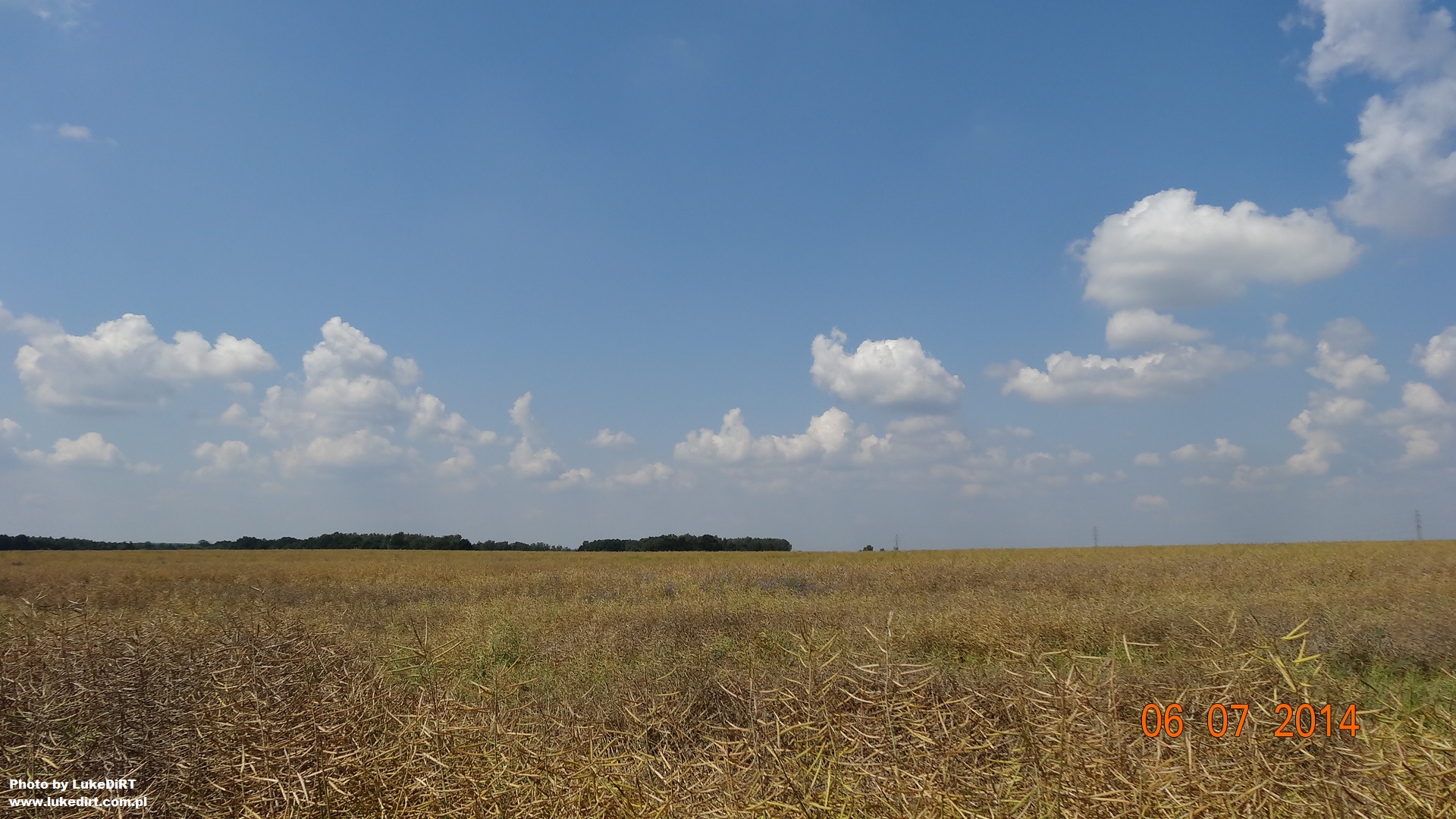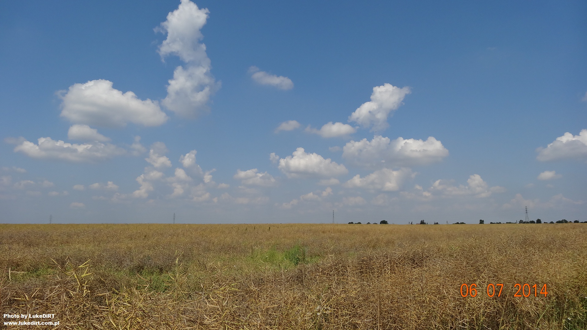 A z 6 lipca 2014 nie mam niestety zdjęć, za to zachowało się coś z niemal bezchmurnego (co było w tym lipcu rzadkością) i gorącego, ale jeszcze nie upalnego 4 lipca. Wspominam ten dzień bardzo miło, to w nim najbardziej wyraziście poczułem rozpoczynające się wakacje Wieczorem obserwowałem trochę niebo, a nad polami latało mnóstwo świetlików.