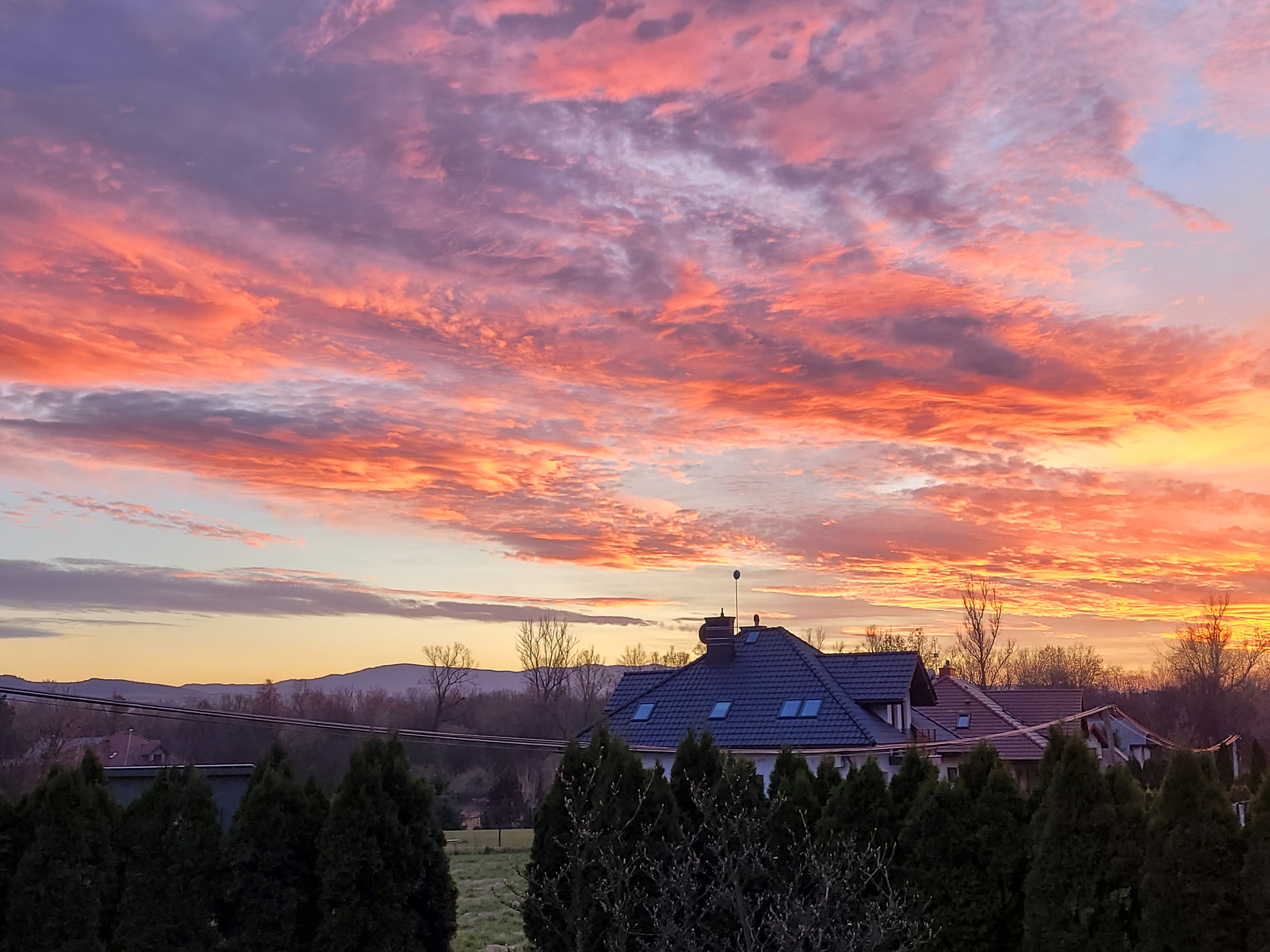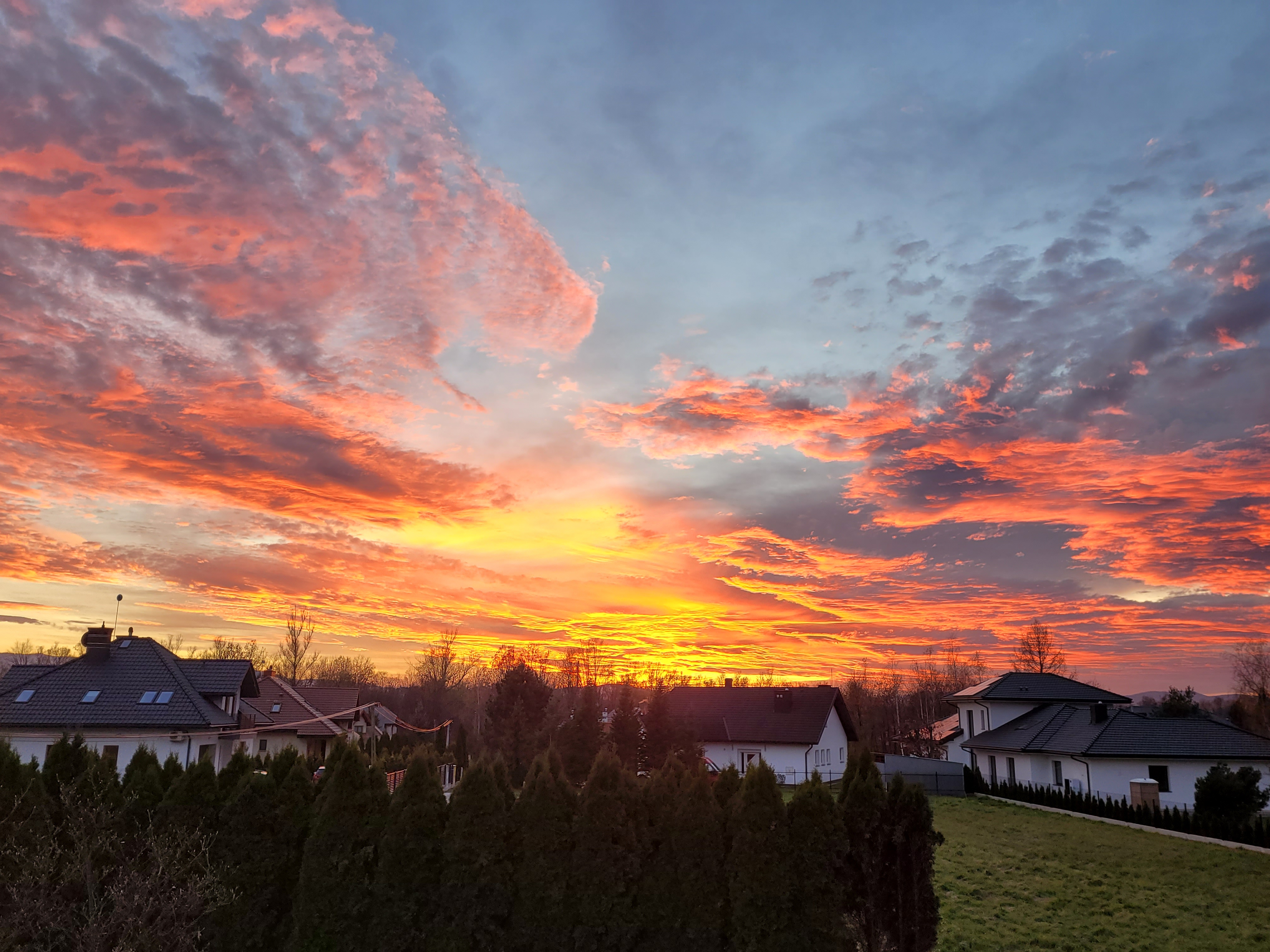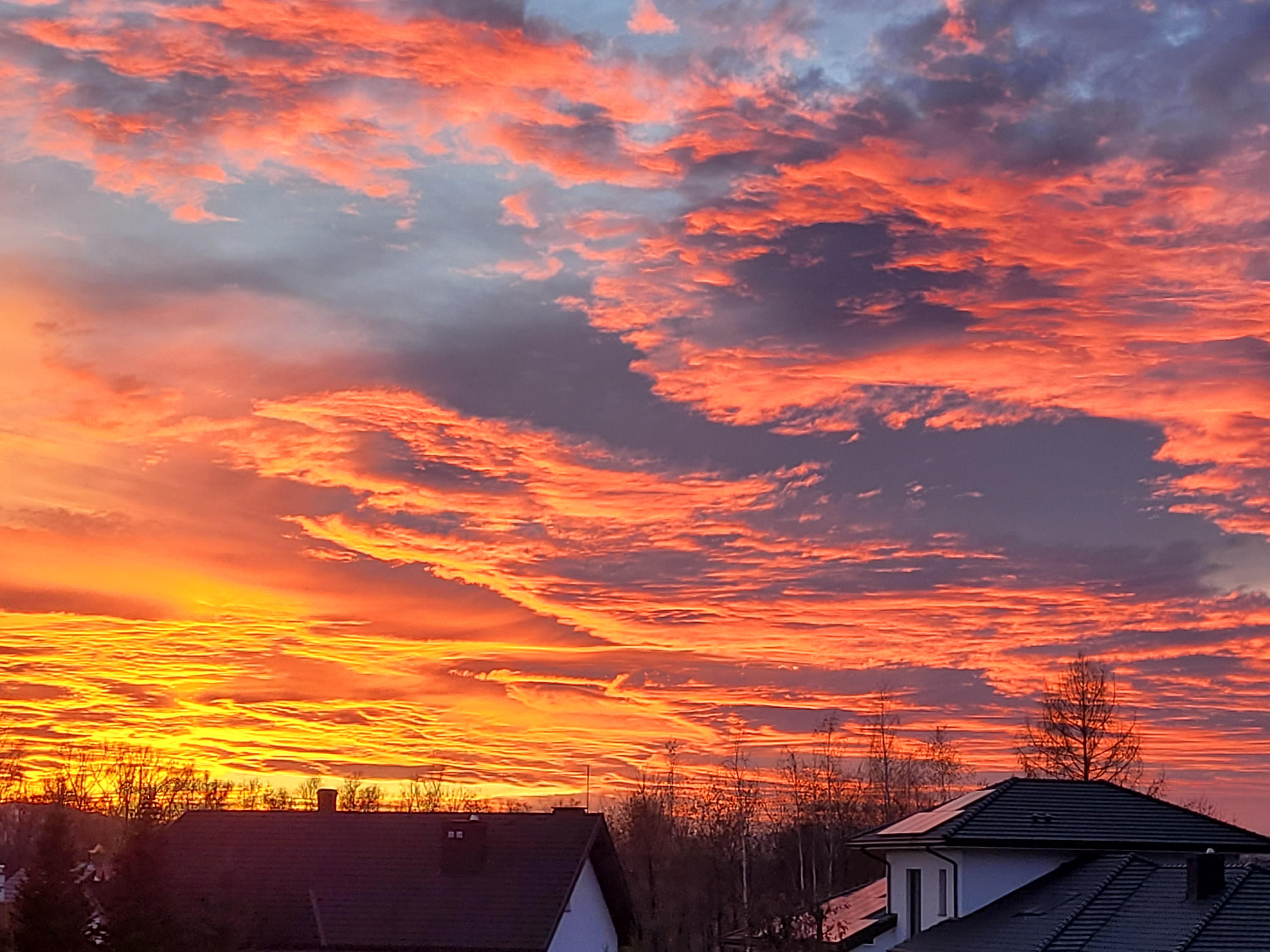 Dziś wieczorem, podczas zachodu Słońca niebo pokryło mnóstwo wspaniałych, ciepłych kolorów w przeróżnych kształtów. Niebo jak namalowane na malarskim płótnie musiało zostać uwiecznione, zobaczcie jak to wyglądało